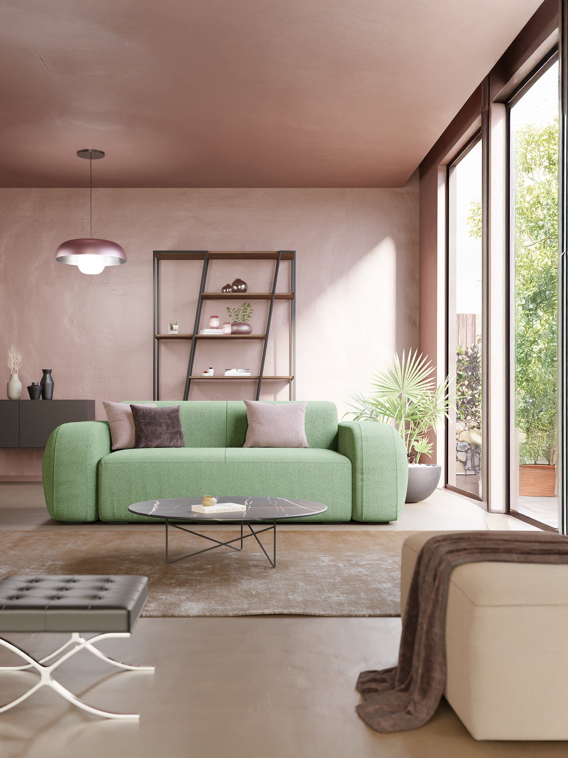 Divano modulare componibile – Composizione Spaccamattone in tessuto smacchiabile T23 pesca