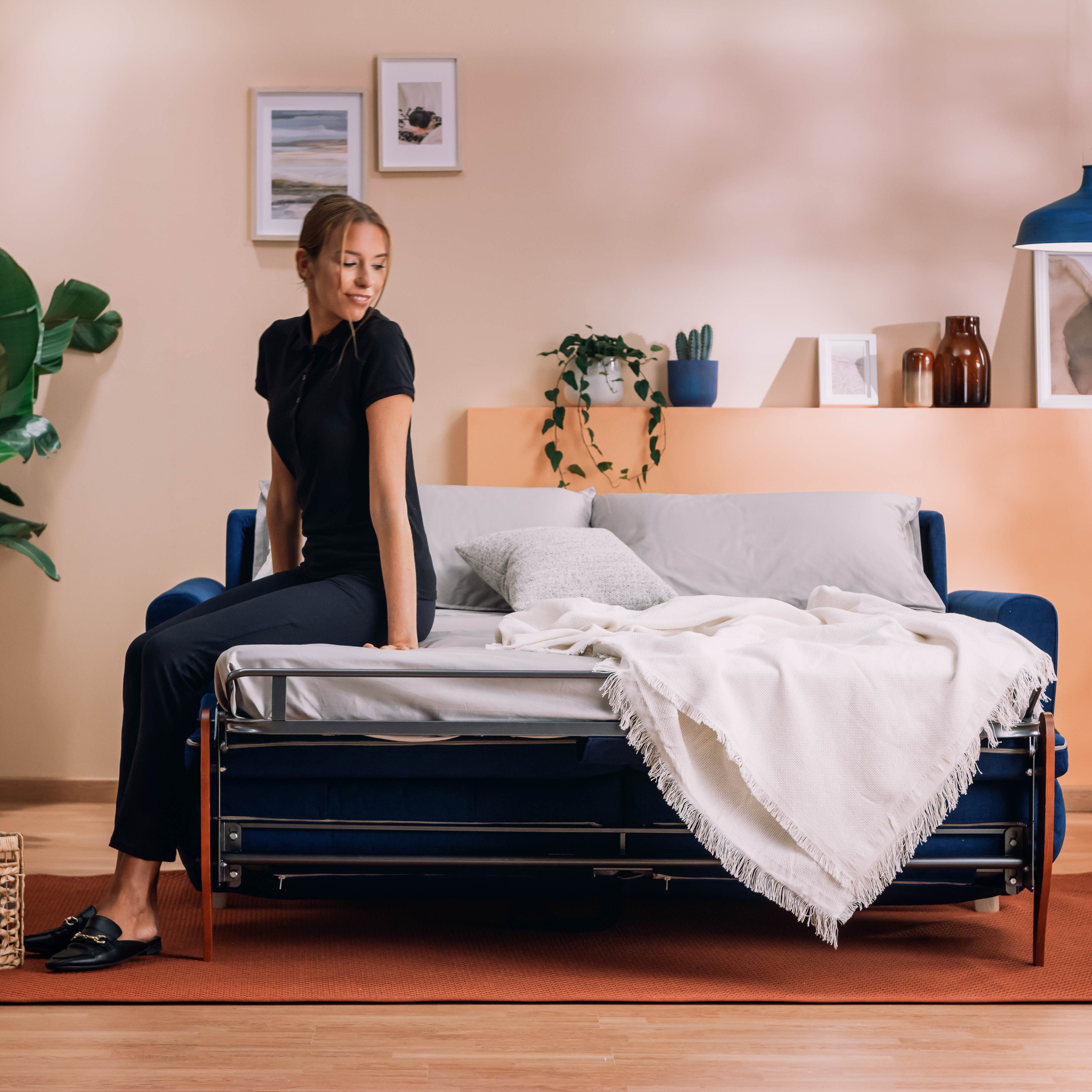 Divano letto matrimoniale in tessuto impermeabile T13 blu