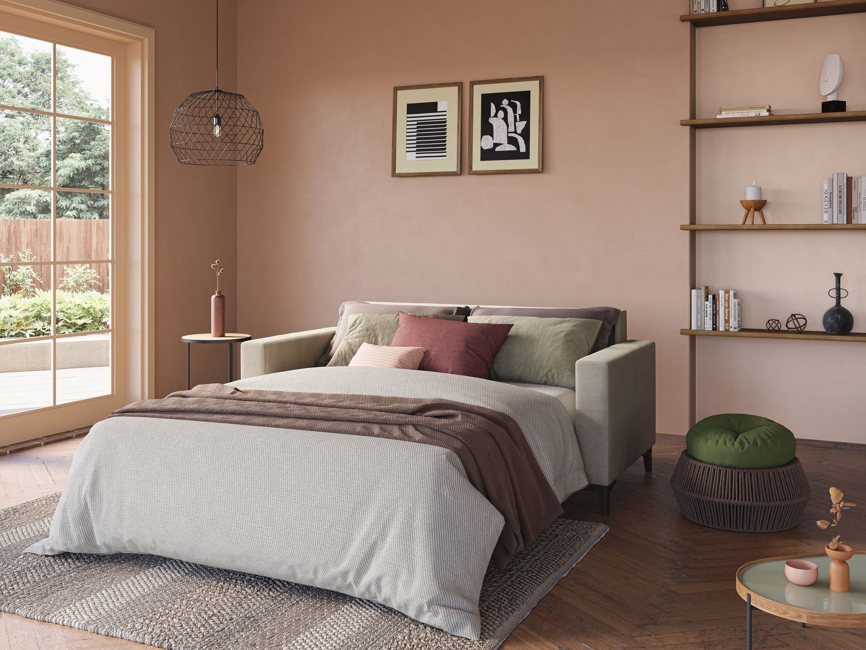 Ecksofa mit Schlaffunktion aus abwaschbarer Mikrofaser T11 puderzucker