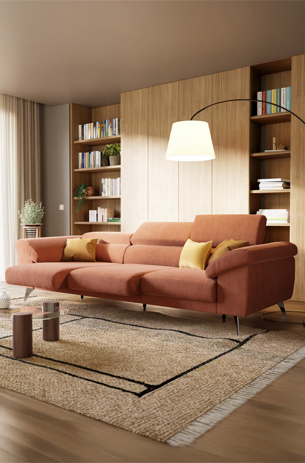Abziehbares Schlafsofa mit Matratze H18 cm und Kissenfach aus abwaschbarem Stoff T23 pfirsich