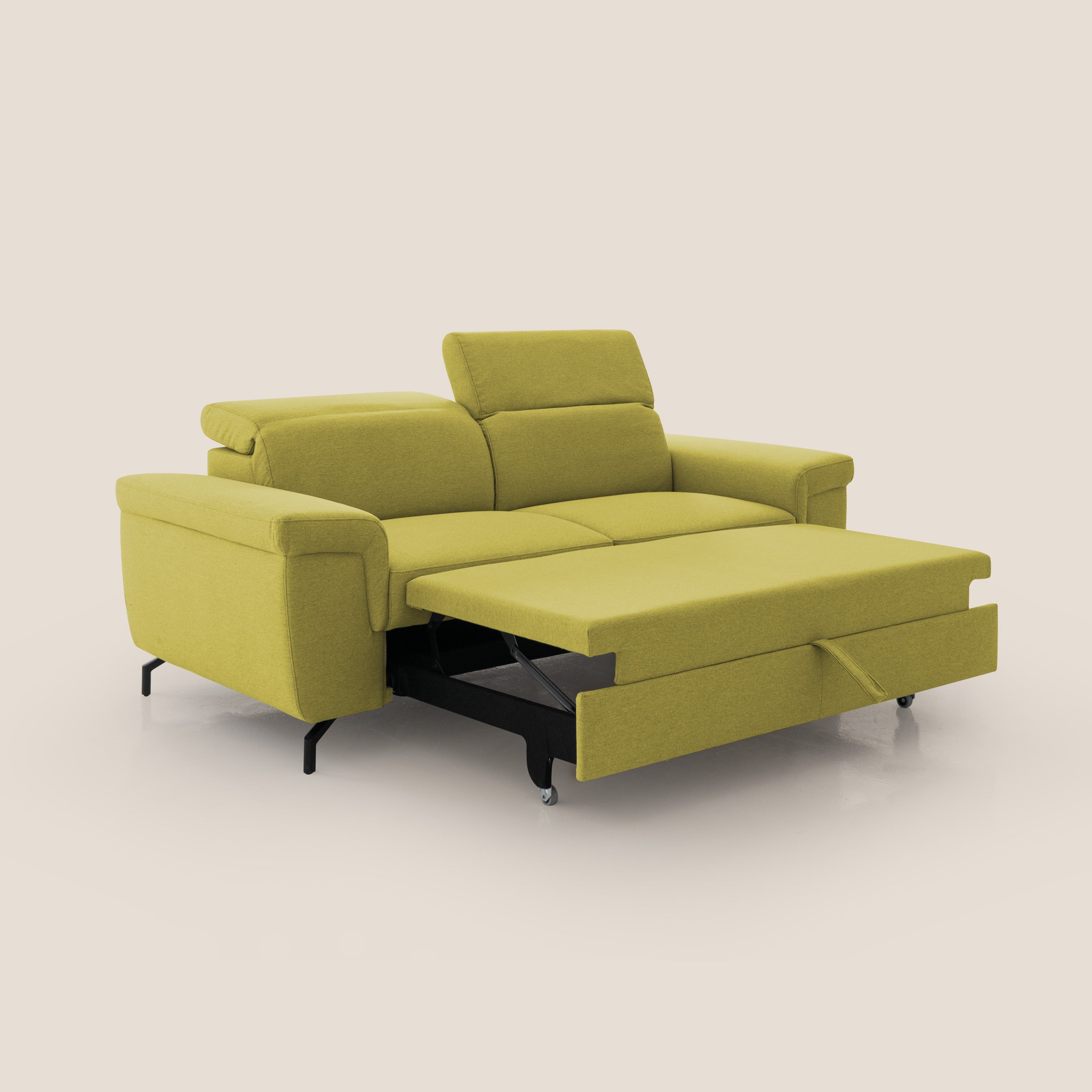 Erhältlich als 2-Sitzer und 3-Sitzer, feststehend oder mit herausnehmbarem Hocker (Fußstütze), ist Aisha mit einem schmutzabweisenden Stoff bezogen, der mit Quick Clean behandelt ist. So lassen sich Wein-, Kaffee-, Pizza-, Saft- und sogar Filzstiftflecken ganz einfach mit Wasser und Neutralseife oder Bikarbonat entfernen.