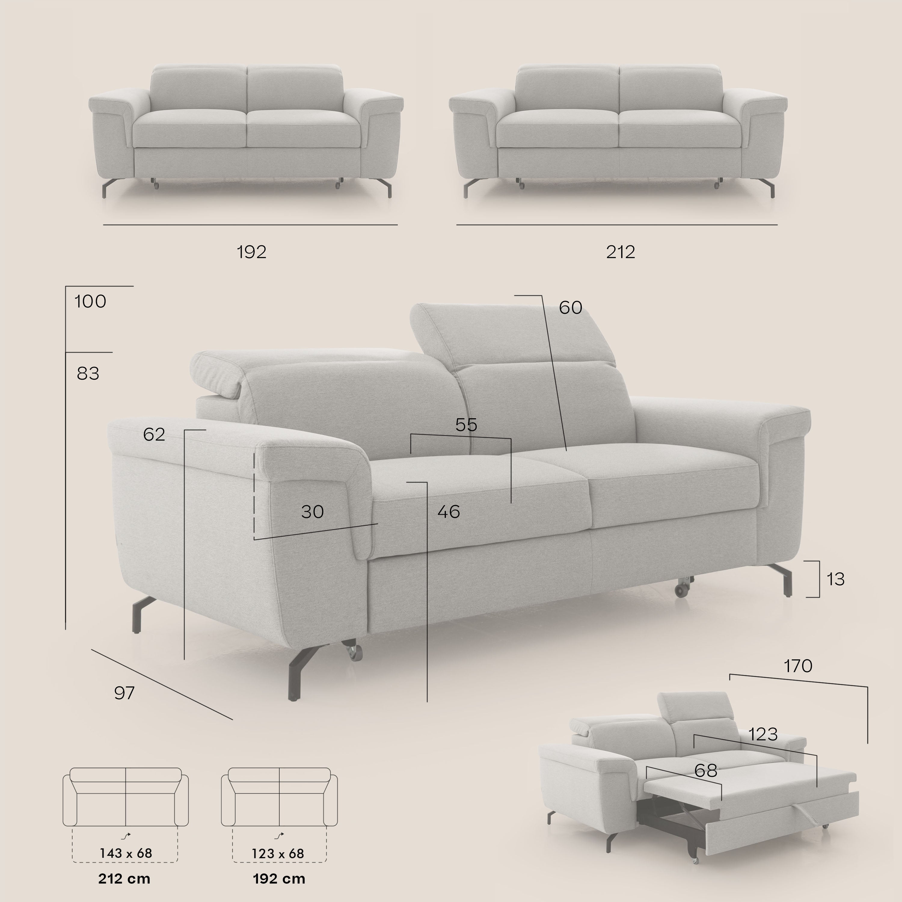 Version 180 3-Sitzer: cm 180 x 97 x 70