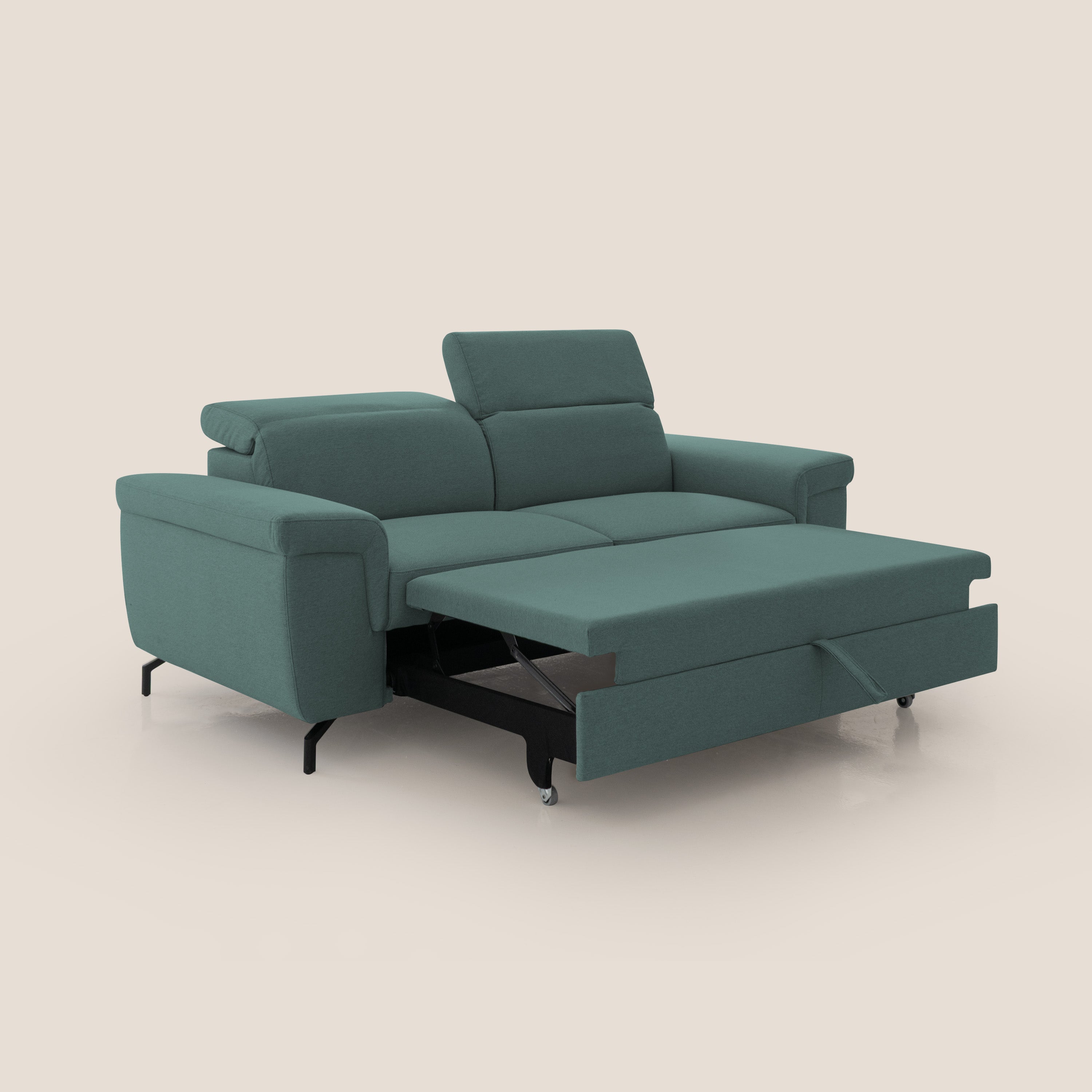 Ausziehbarer Hocker mit gummierten, kratzfesten Rollen: verwandelt das Sofa in eine Halbinsel, auf der man sich komplett ausstrecken kann