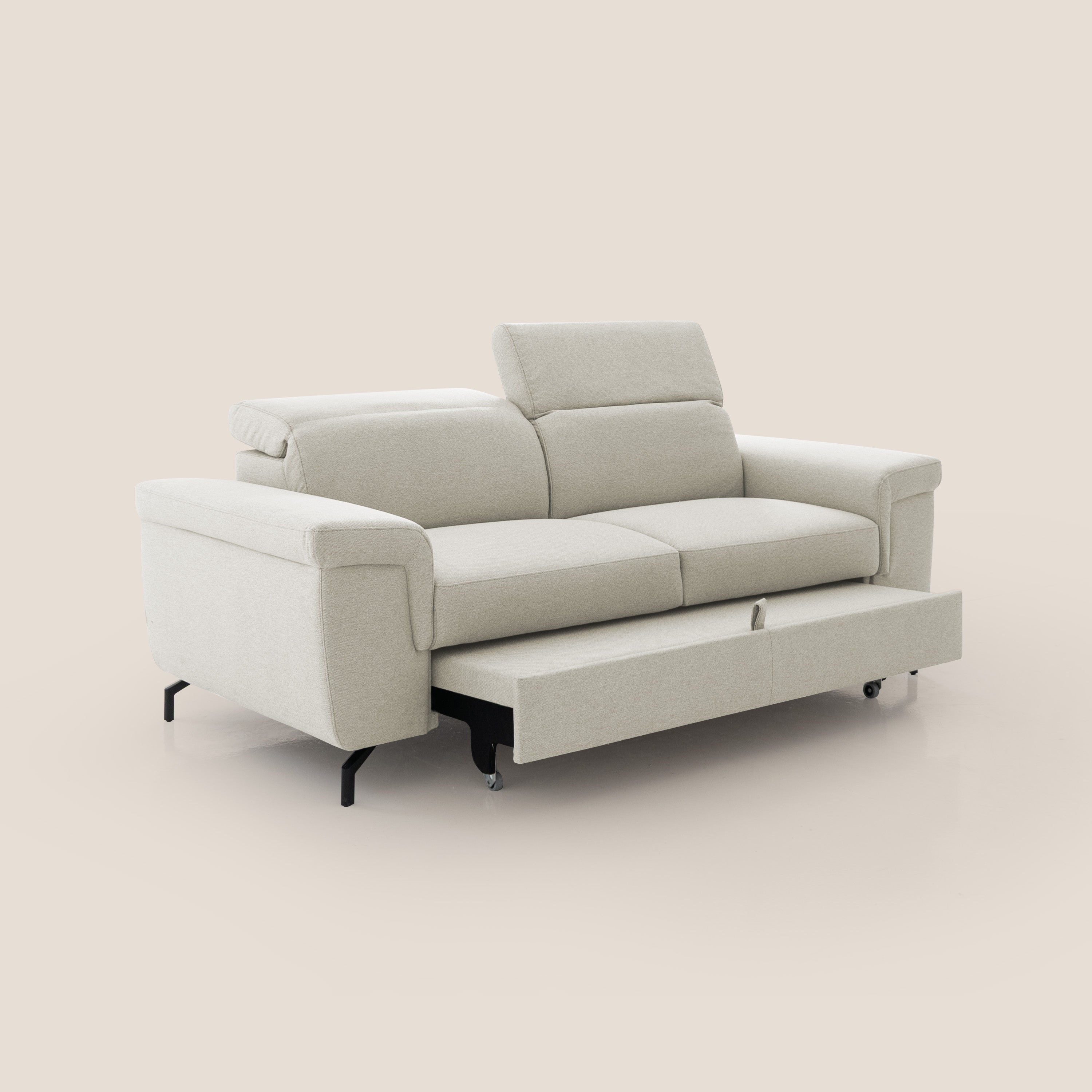Ausziehbarer Hocker mit gummierten, kratzfesten Rollen: verwandelt das Sofa in eine Halbinsel, auf der man sich komplett ausstrecken kann