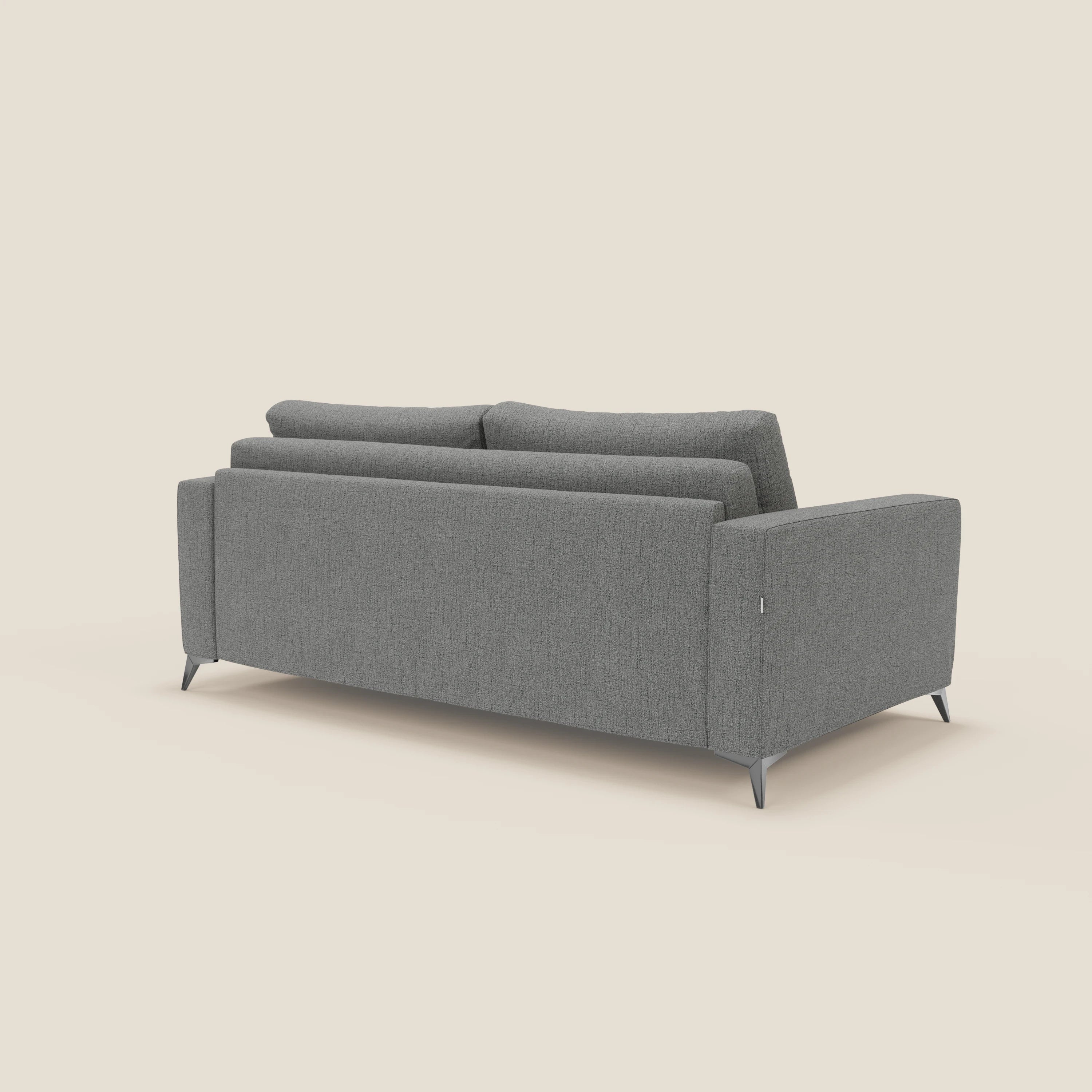Das Schlafsofa Alaya besticht auf den ersten Blick durch sein schlichtes und raffiniertes Design: gerade Linien, gut proportionierte Volumen und eine schlanke Silhouette, die jeden Raum, auch den modernsten, aufwertet. Die 13 cm hohen Füße aus Titanio Dark-Stahl verleihen dem Modell ein schlankes und leichtes Aussehen, das sich perfekt für minimalistische oder moderne Umgebungen eignet. Seine klare Ästhetik lässt sich leicht mit verschiedenen Einrichtungsstilen kombinieren, auch dank der Möglichkeit, den Bezug vollständig individuell anzupassen.