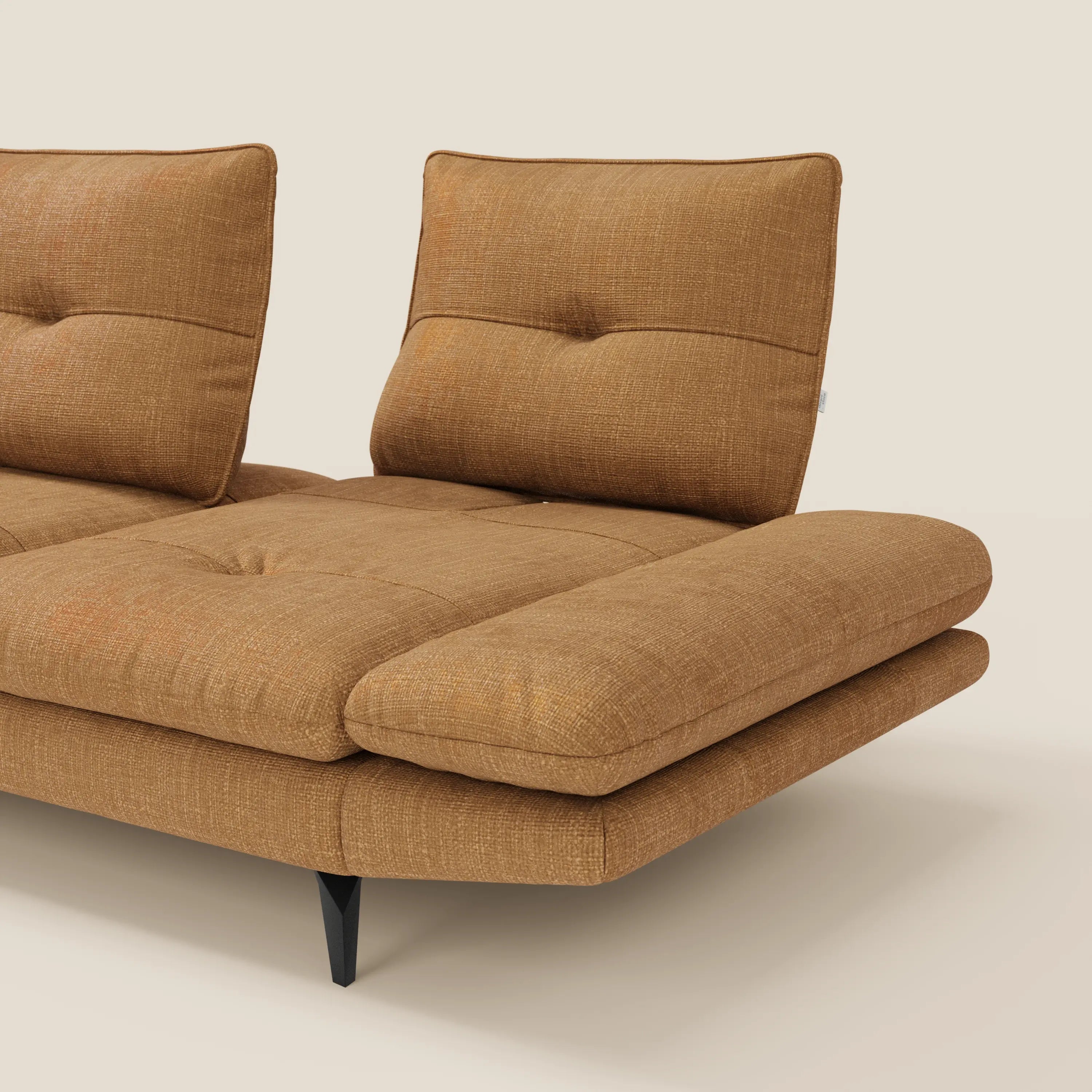 Das Herzstück des Modells ist sein System mit verschiebbaren Rückenlehnen, mit dem Sie die Sitztiefe ganz nach Ihren Bedürfnissen einstellen können: eine intelligente Lösung, die es sowohl für gesellige Momente als auch für pure Entspannung ideal macht. Die Polsterungen aus formbeständigem Polyurethan mit doppelter Dichte sorgen für die richtige Balance zwischen Stützkraft und Weichheit und gewährleisten einen gleichbleibenden Komfort über lange Zeit.