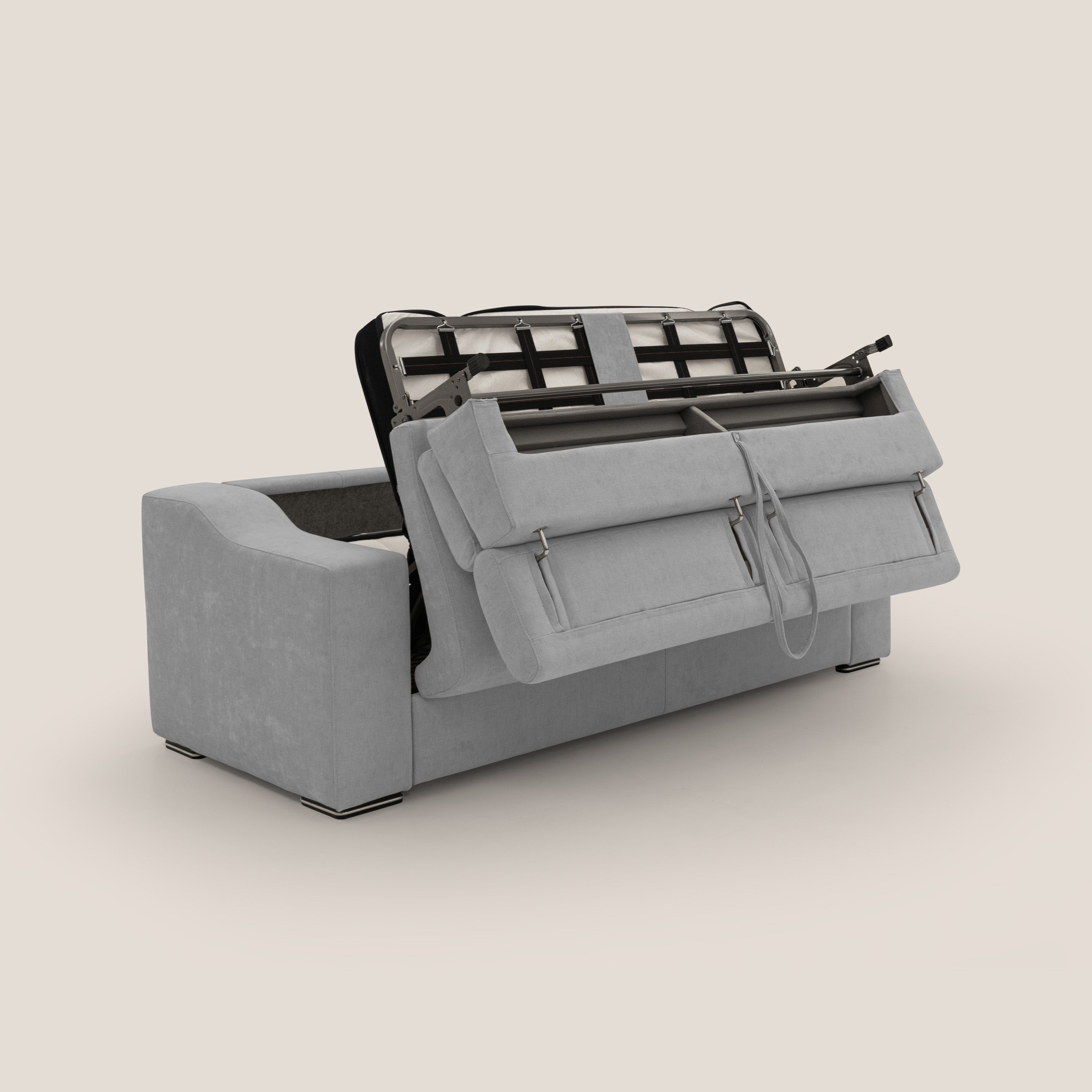 Schlafsofa aus weichem, wasserfestem Stoff T14 hellgrau