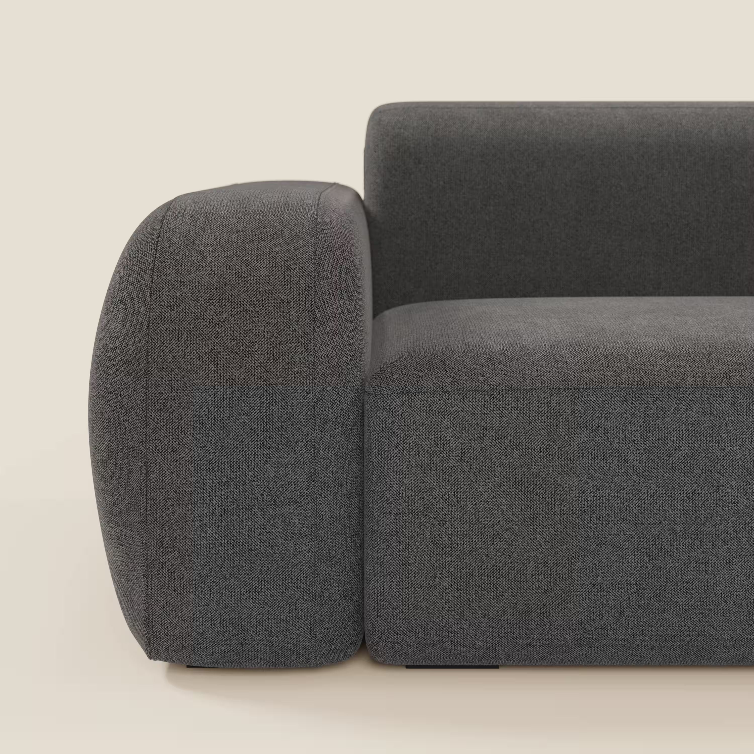 Das BonBon mit Endhocker vereint Eleganz und Funktionalität. Der in die Komposition integrierte Hocker sorgt für zusätzliche Vielseitigkeit: Er kann als Chaiselongue, Fußstütze oder zusätzlicher Sitzplatz genutzt werden. Die geschwungenen und weichen Formen unterstreichen den einladenden Stil der Kollektion. Mit weichem, wasserfestem und fleckenabweisendem Stoff bezogen, Öko-Tex-zertifiziert und waschbar, ist er in 16 Farben erhältlich oder individuell anpassbar. Eine perfekte Komposition für alle, die Komfort und Funktionalität in einem einzigen Sofa suchen.