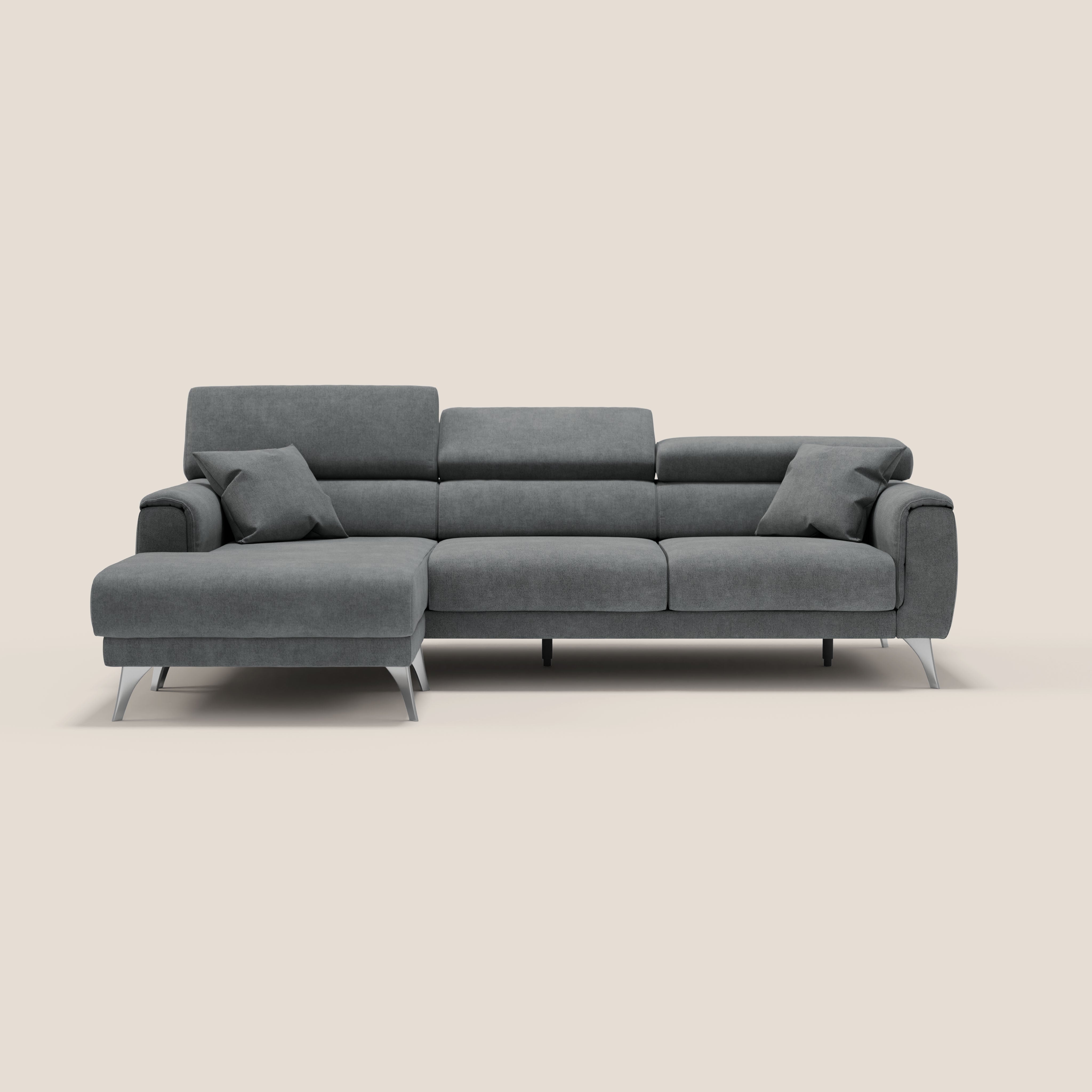 Das Ecksofa Caravaggio mit Halbinsel/Chaiselongue ist die ideale Wahl für alle, die Komfort, modernen Stil und Zweckmäßigkeit miteinander verbinden möchten. Perfekt, um große Räume mit einem Hauch von Eleganz einzurichten, zeichnet sich dieses Modell durch seine ausziehbaren Schiebesitze und die praktische Halbinsel aus, die eine einzigartige Vielseitigkeit für die tägliche Entspannung bietet.
