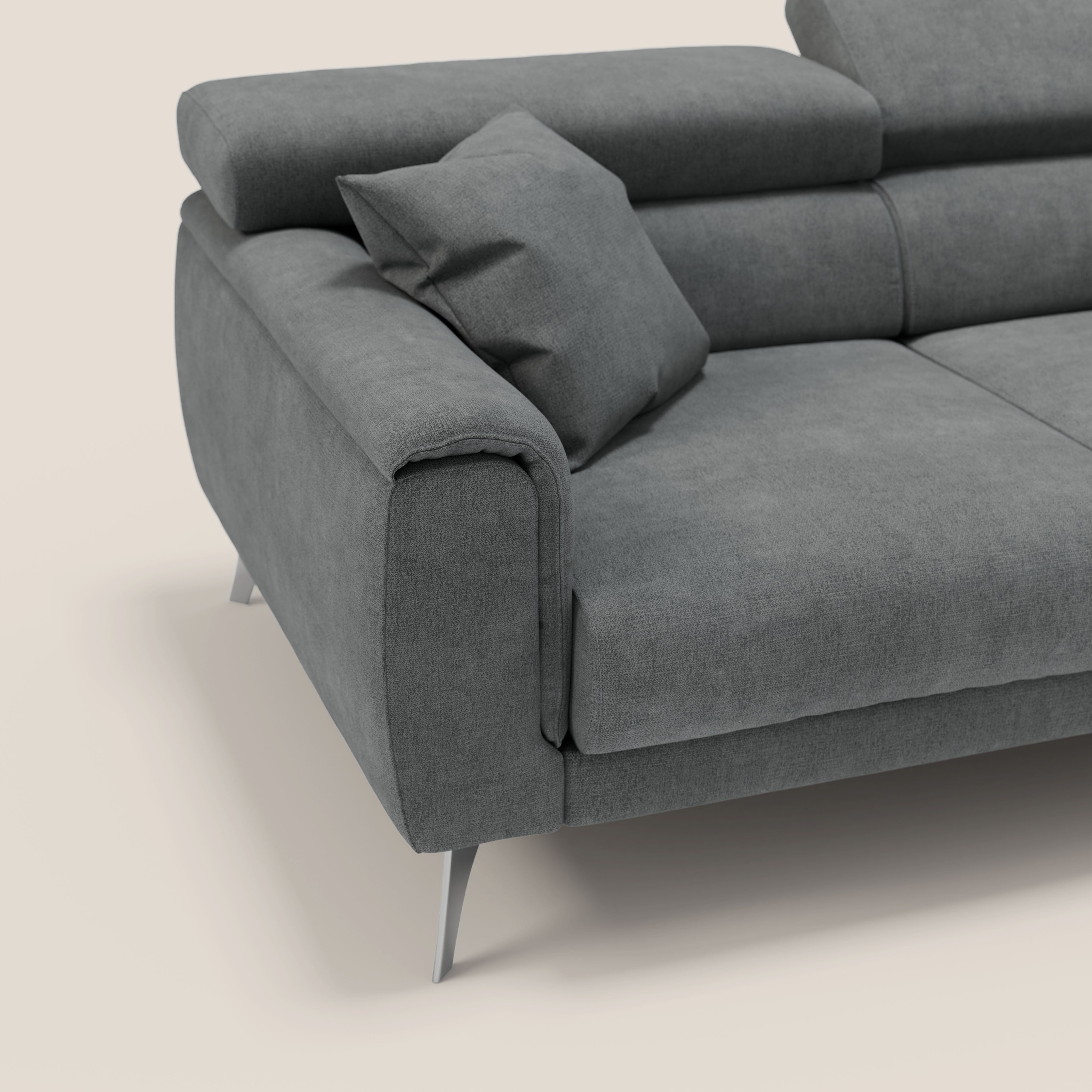 Caravaggio vereint Komfort und ergonomische Unterstützung dank seiner Sitze mit doppelter Dichte und Memory-Zellen sowie 30-fach verstellbaren Kopfstützen. Die ergonomischen Rückenlehnenkissen stützen den Lendenwirbelbereich optimal, so dass dieses Sofa sowohl zum Entspannen als auch zum Arbeiten oder Lesen geeignet ist.