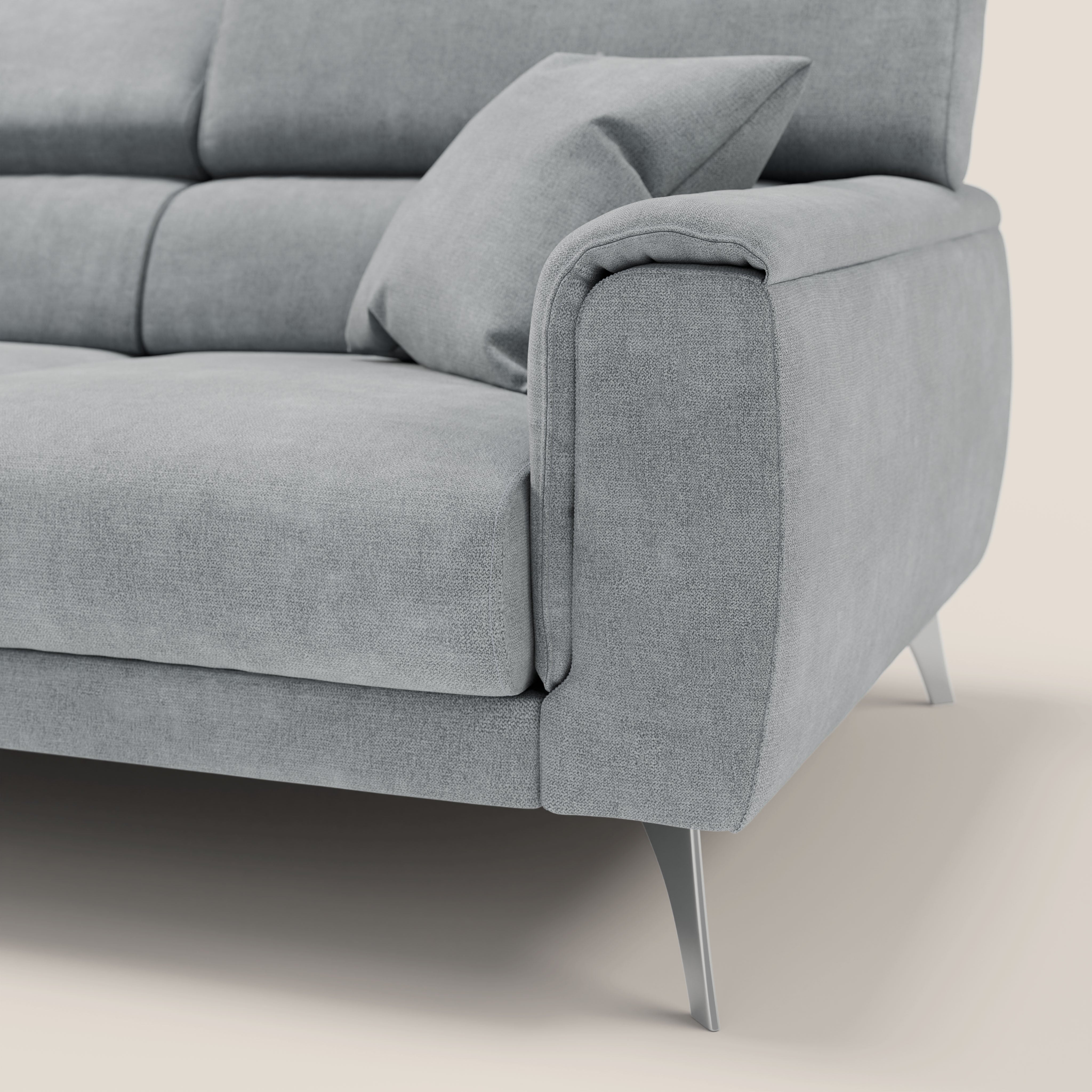 Der schmutz- und wasserabweisende Stoffbezug, der komplett abnehmbar ist, macht das Sofa pflegeleicht und langlebig. Die 15 cm hohen Füße aus verchromtem Stahl verleihen dem Sofa einen modernen Look und erleichtern die Reinigung des Bodens, wodurch Ästhetik und Funktionalität vereint werden.