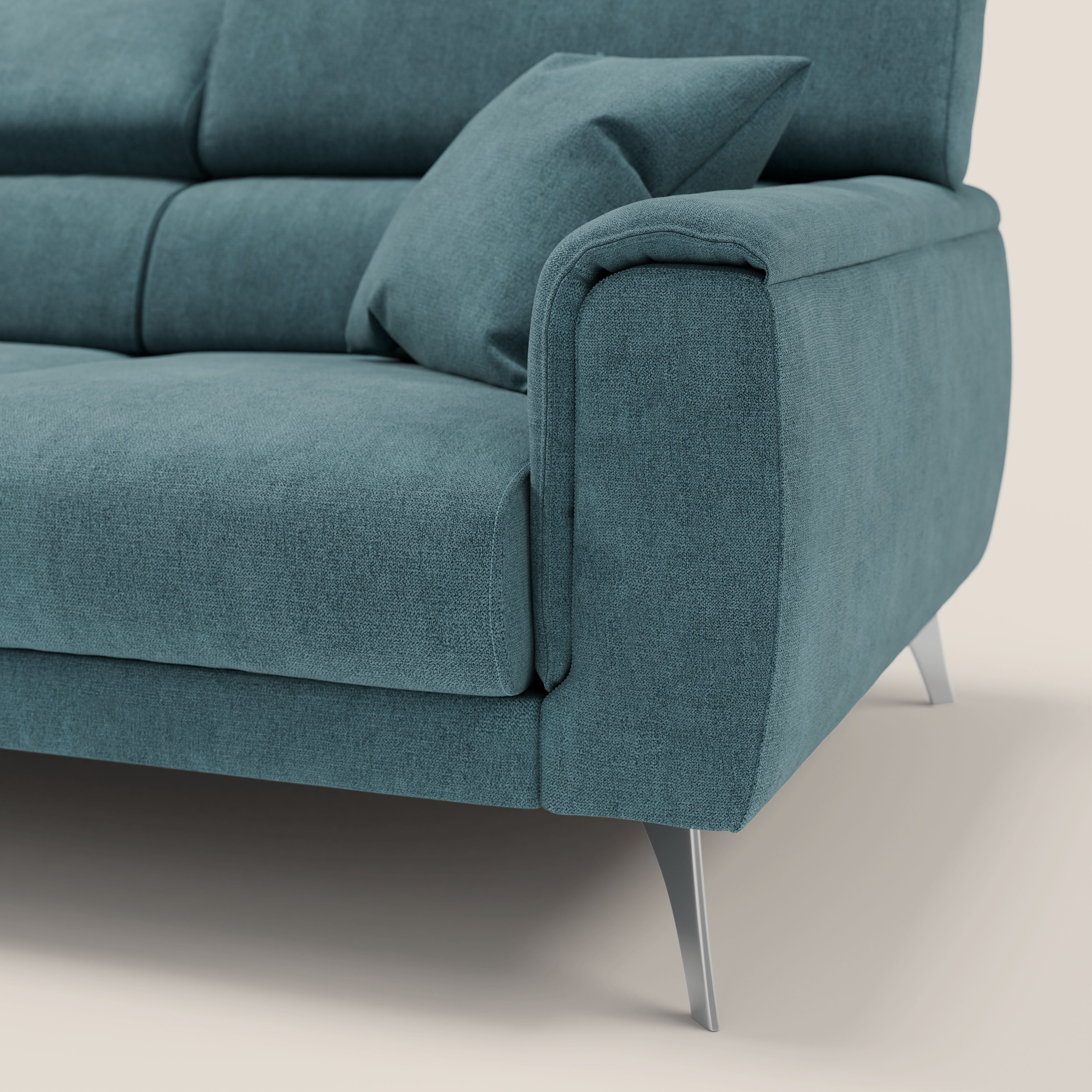 Der schmutz- und wasserabweisende Stoffbezug, der komplett abnehmbar ist, macht das Sofa pflegeleicht und langlebig. Die 15 cm hohen Füße aus verchromtem Stahl verleihen dem Sofa einen modernen Look und erleichtern die Reinigung des Bodens, wodurch Ästhetik und Funktionalität vereint werden.