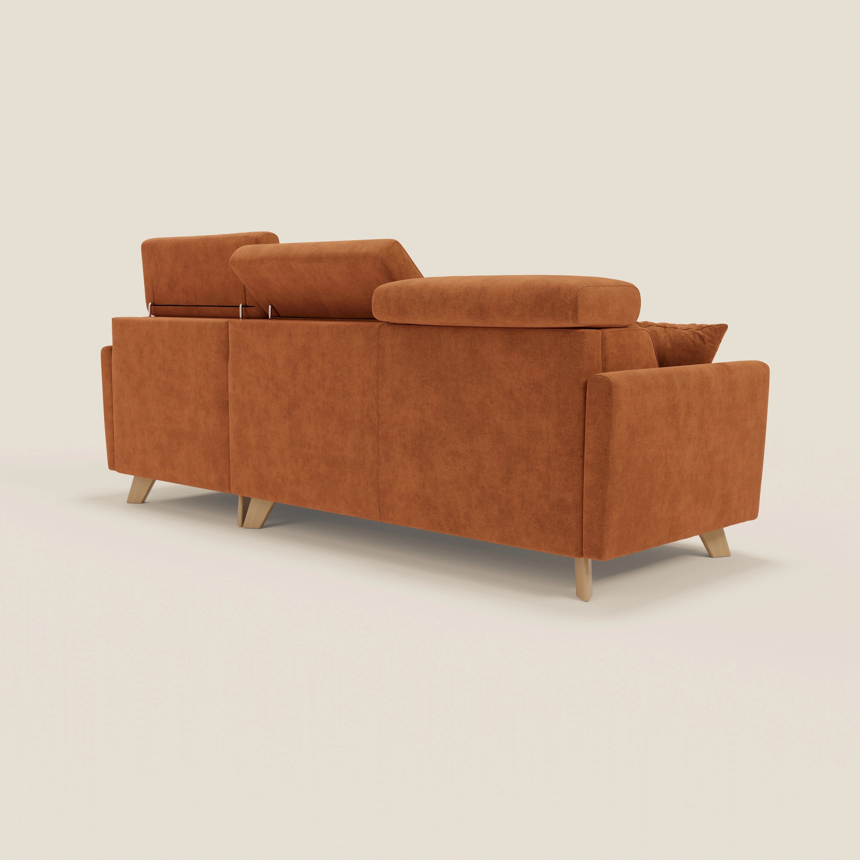 FRANCY ist das Ecksofa, das jeden Raum in eine Oase des Komforts und der natürlichen Schönheit verwandelt. Seine essentiellen Linien, die schlanken, platzsparenden Armlehnen und die hohen Füße aus Naturholz erinnern an die schlichte Eleganz skandinavischer Interieurs, während die verstellbaren Kopfstützen und die Halbinsel mit integriertem Staufach seine Vielseitigkeit und Alltagstauglichkeit unterstreichen. Ein Sofa für intelligentes Wohnen, das keine Kompromisse zwischen Stil und Funktionalität eingeht.
