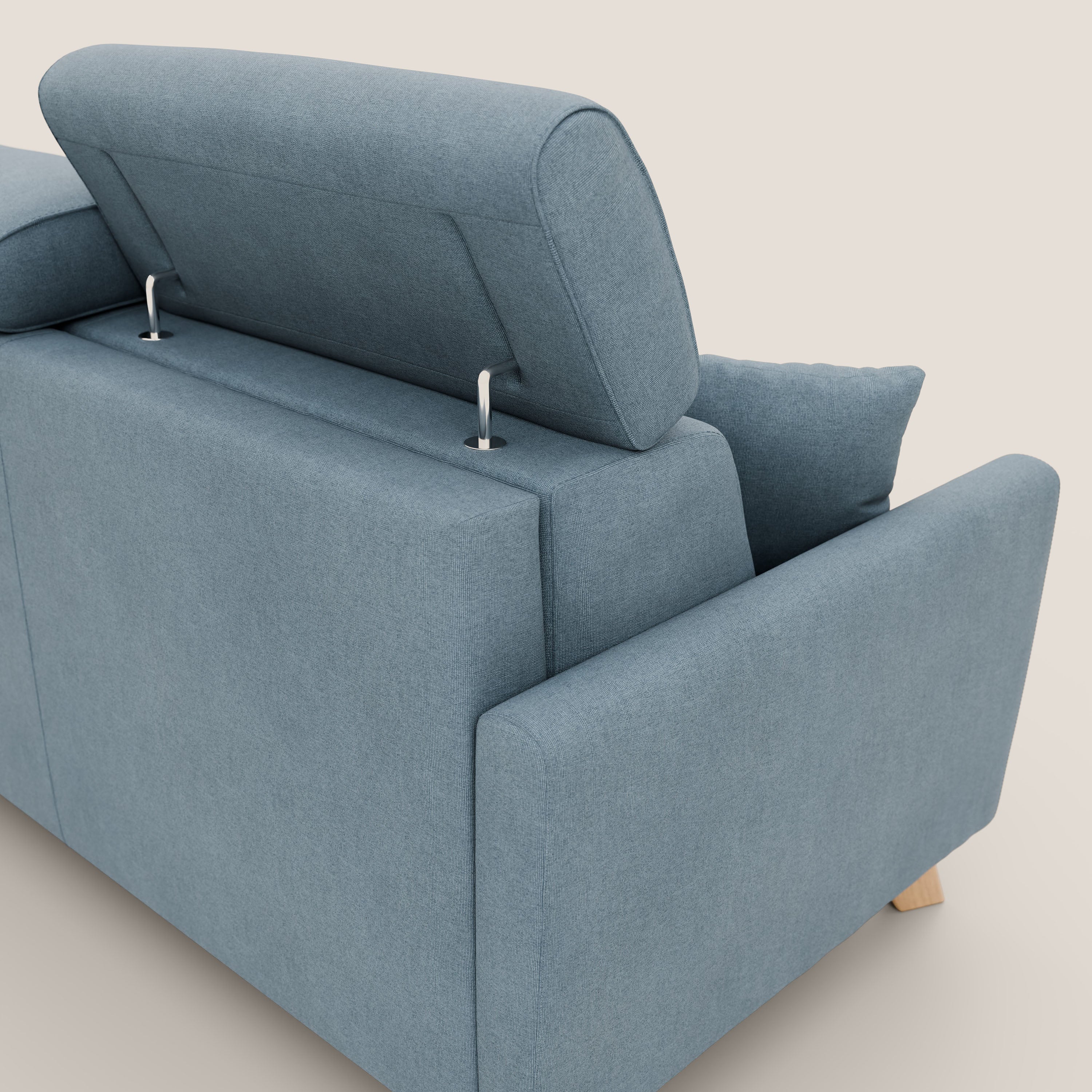Die verstellbaren Kopfstützen mit 7 Neigungsstufen bieten individuellen Komfort, während die 13 cm hohen Füße aus Naturholz Ihrem Wohnzimmer einen leichten und natürlichen Touch verleihen, perfekt für nordische, skandinavische und Boho-Chic-Einrichtungen.