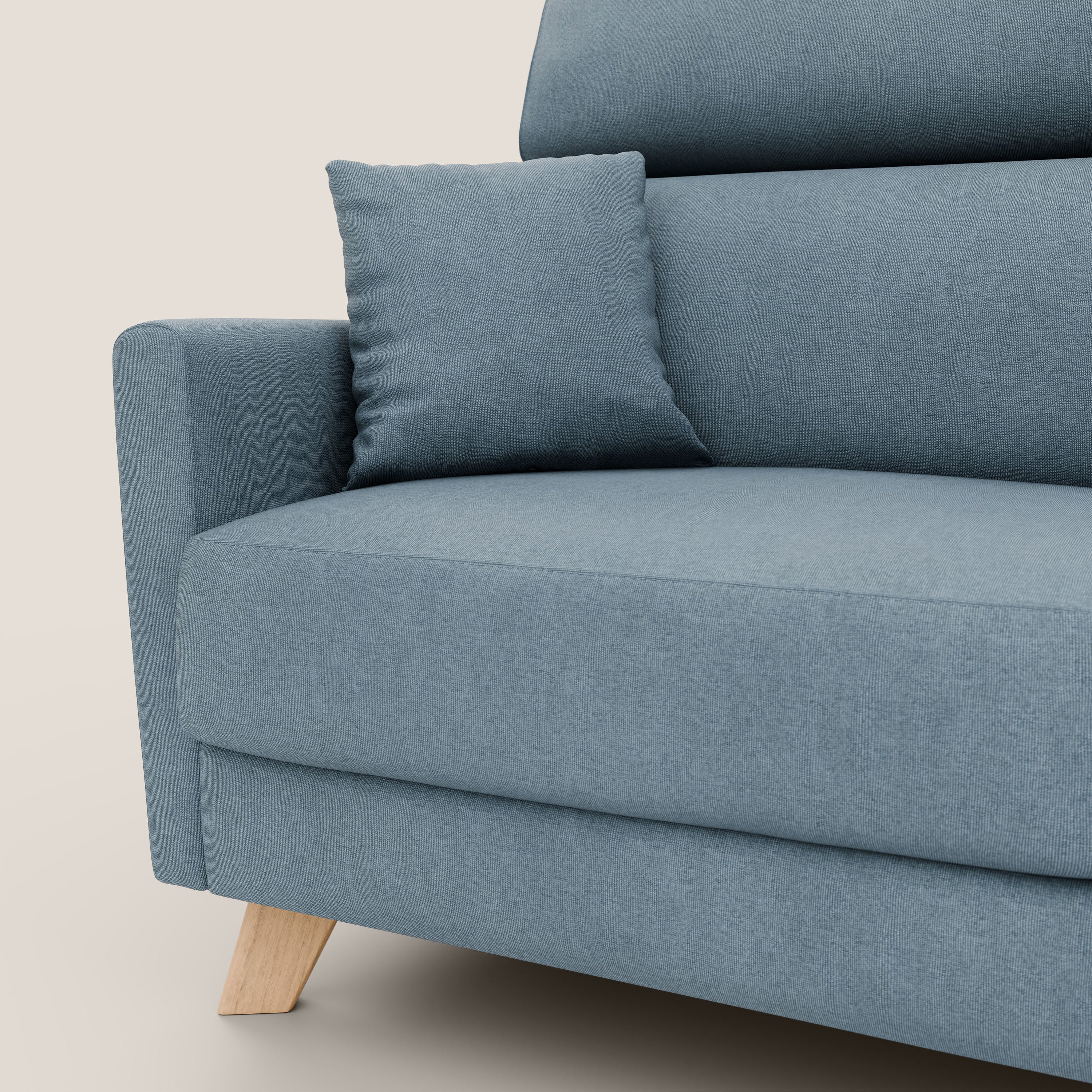 ELEKTROGESCHWEIßTES Bettnetz (Standard): Unsere Schlafsofas sind mit einem innovativen Klappensystem ausgestattet, das mit einer einfachen Bewegung das Öffnen des Mechanismus ermöglicht, ohne dass die Sitz- und Rückenkissen entfernt werden müssen. Das Gestell besteht aus hochfestem Möbelrohr mit Epoxy-Lackierung, um zu verhindern, dass die Teile korrodieren oder durch aggressive Stoffe beschädigt werden. Außerdem bietet es aus ökologischer Sicht zahlreiche Vorteile, da keine Lösungsmittel verwendet werden. Der Mechanismus wird mit Bajonettverschlüssen geliefert, die die Montage und Demontage des Sofas (Armlehnen, Rückenlehne, Blende) erleichtern und das Problem der Handhabung beim Transport lösen.