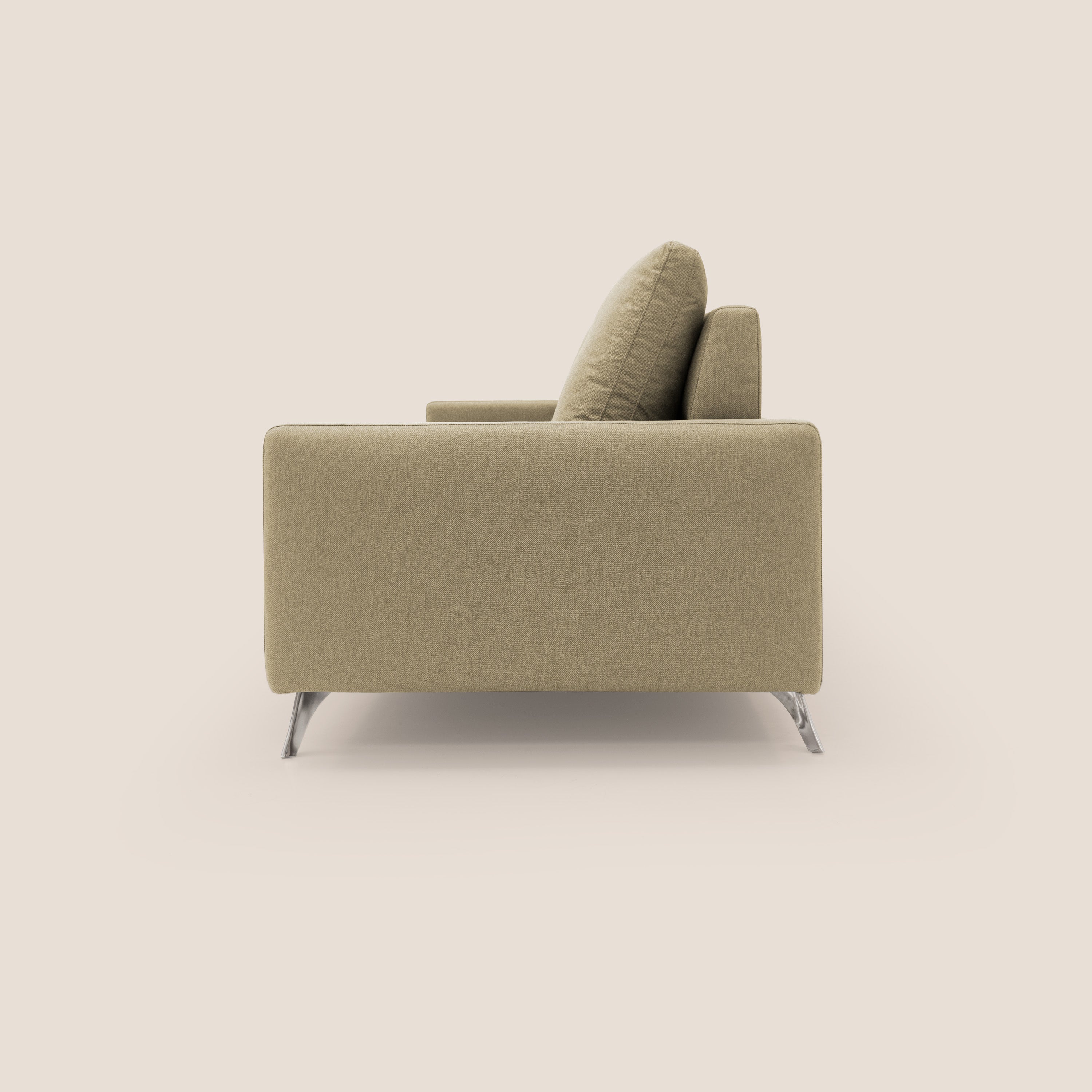 Die bequemen Sitze mit doppelter Dichte ergänzen das innovative Schiebesystem für die Sitze, das das Sofa praktisch macht und es an jede gewünschte Tiefe anpassen kann. Sie erhalten ein Sofa mit größerer Tiefe, das sich perfekt für flache Räume oder für diejenigen eignet, die sich mit ausgestreckten Füßen entspannen möchten.