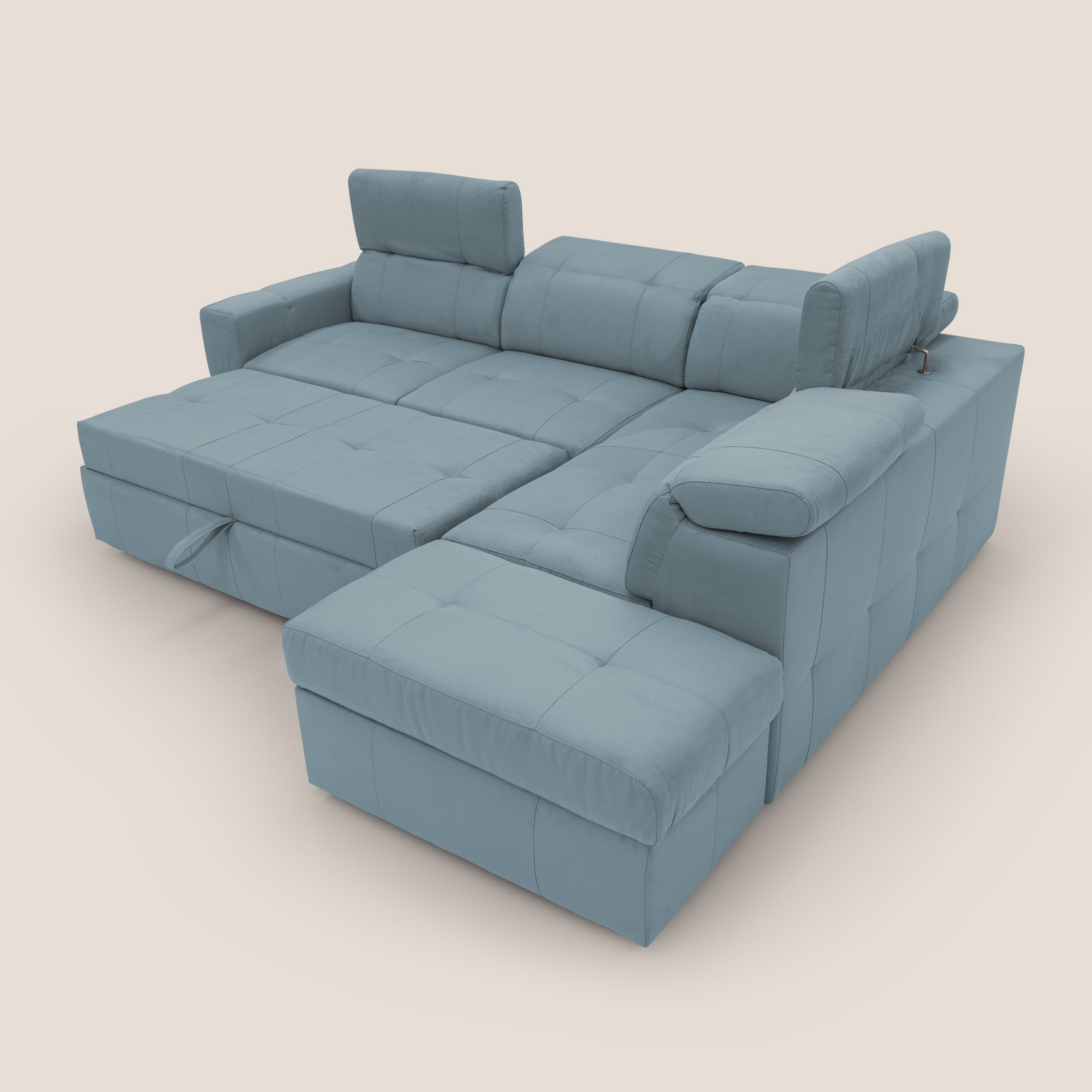 - Ausziehbare Ottomane: Genießen Sie maximale Entspannung mit der Fußstütze, die sich dank des Stoffgriffs leicht öffnen lässt. Mit dem ausziehbaren Rollen-System können Sie sich bequem ausstrecken, um fernzusehen, ein Buch zu lesen oder sich auszuruhen. Der Delphin-Mechanismus ist mit gummierten, kratzfesten Rollen ausgestattet, die sich perfekt für alle Bodenbeläge eignen. Neben dem einfachen und leichten Öffnungsmechanismus verfügen Sie über ein Sofa mit der Tiefe einer Ecke, das sich perfekt für flache Räume oder für diejenigen eignet, die sich mit vollständig ausgestreckten Füßen entspannen möchten.