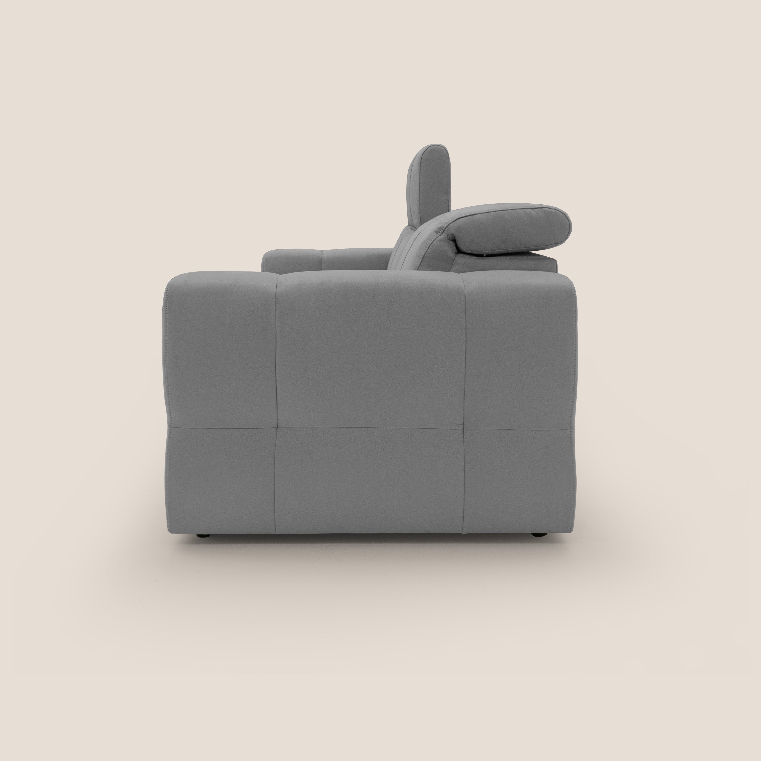 Divano Kronos: un perfetto connubio tra comfort e design moderno. Con poggiapiedi estraibile, poggiatesta reclinabili e un rivestimento smacchiabile ideale per chi ha animali, offre una seduta ad alta densità e piedini antigraffio. La lavorazione artigianale capitonnè aggiunge un tocco di eleganza. Disponibile in diverse misure, perfetto per ogni tipo di ambiente.