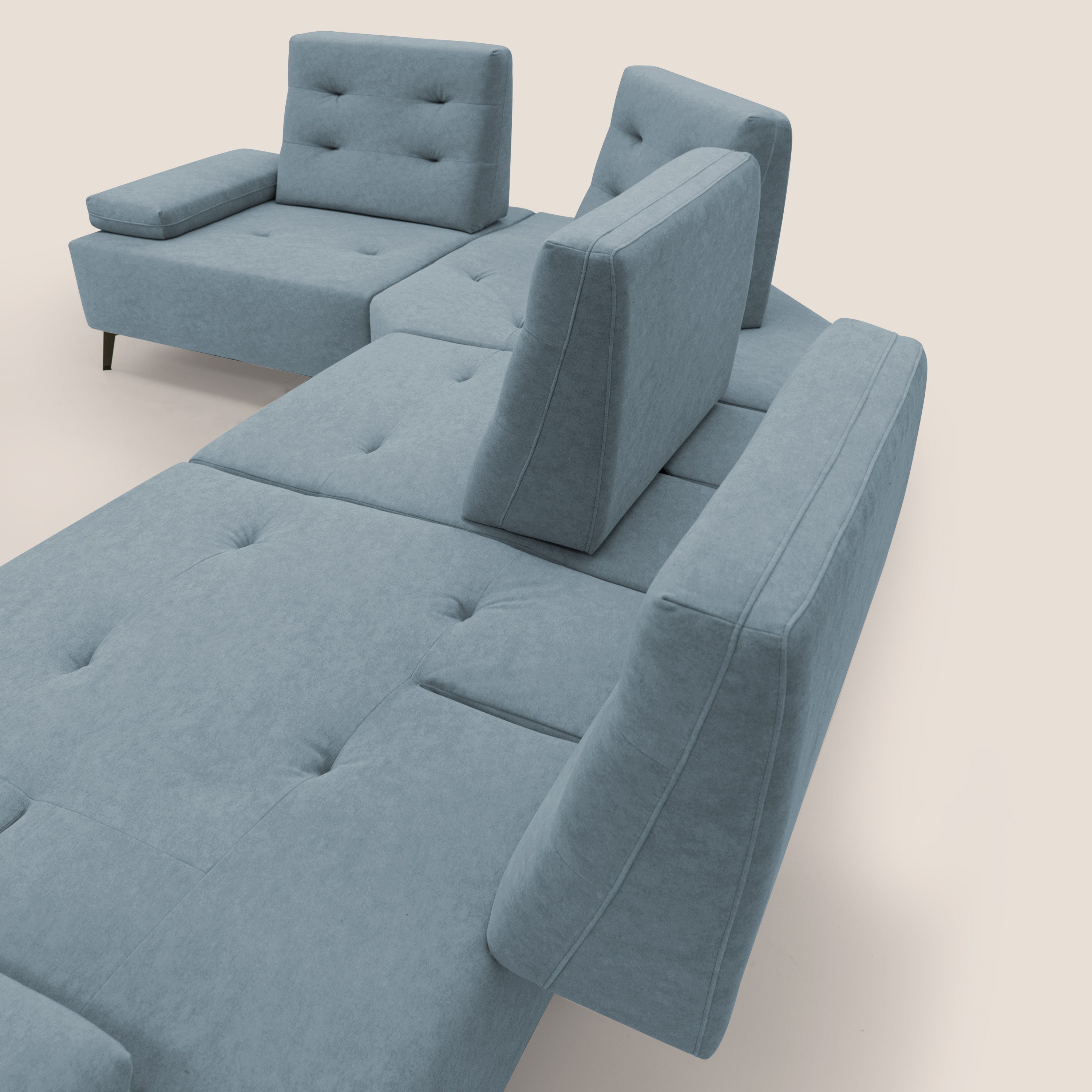 LUGANO bietet viele Konfigurationsmöglichkeiten; aus den modernen Linien entsteht ein Sofa mit einzigartigen Eigenschaften. Mit beweglichen und verschiebbaren Rückenlehnen, die von 58 cm bis 102 cm verstellbar sind, passt sich dieses entspannende Sofa leicht an die gewünschte Position an. Ein Schiebemechanismus (dank der Gleitfunktion) ermöglicht es, die Rückenlehnen nach hinten zu verschieben und die Armlehnen zu öffnen, für einen Komfort, auf den man nicht verzichten kann!