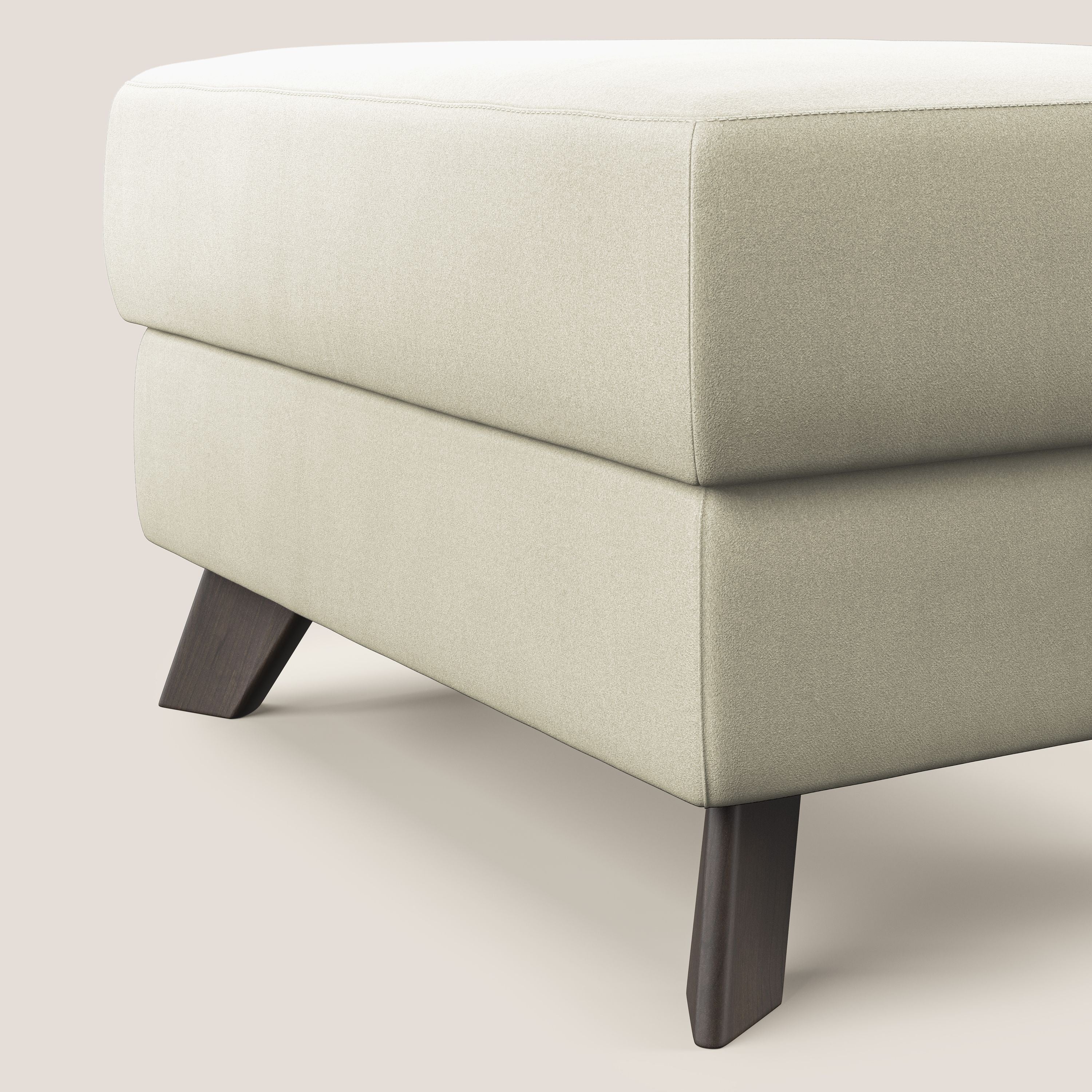 Der MOON Hocker ist ein echter Service-Hocker, der es Ihnen ermöglicht, Decken, Zeitschriften und Spiele in einem praktischen, leicht zugänglichen Staufach aus wasserfester, technischer Mikrofaser, die leicht zu reinigen und von Flecken zu befreien ist, zu verstauen.