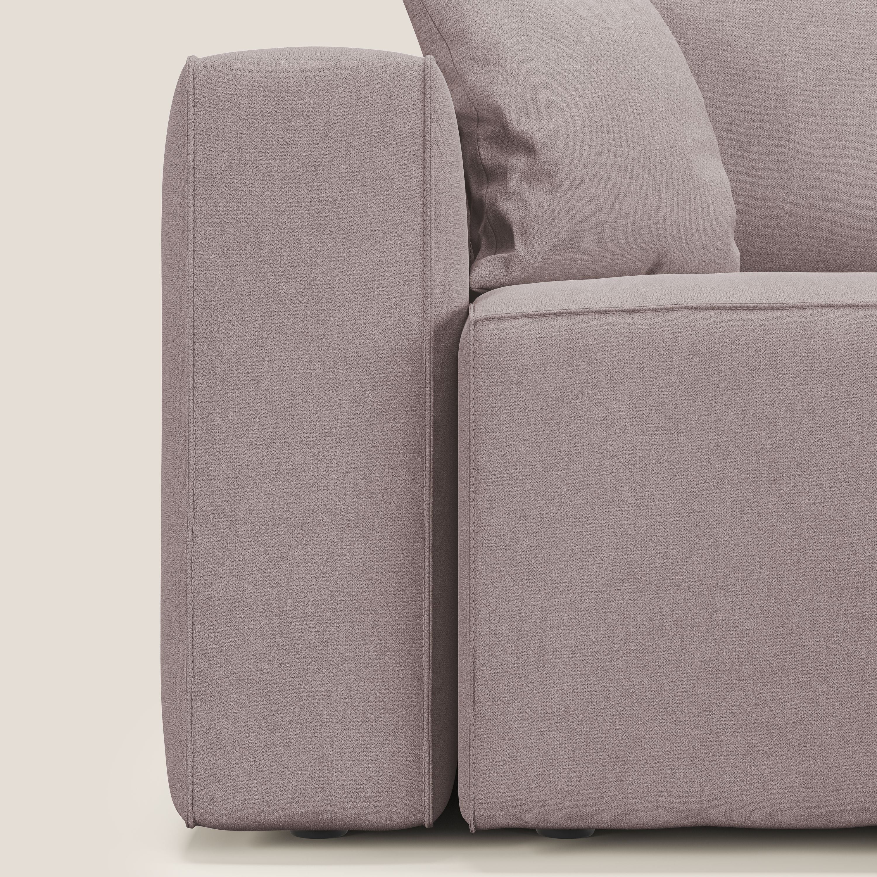 Vollständig abnehmbarer Bezug aus schmutzabweisendem Stoff mit wasserabweisender Behandlung. Die raffinierten Details in der Endverarbeitung verleihen dem Modell einen raffinierten Stil, der in seiner Art einzigartig ist, mit einer tadellosen Verarbeitung beim Nähen, bei der Auswahl der verwendeten Rohstoffe und in der Endphase der Polsterung jedes einzelnen Produkts.
