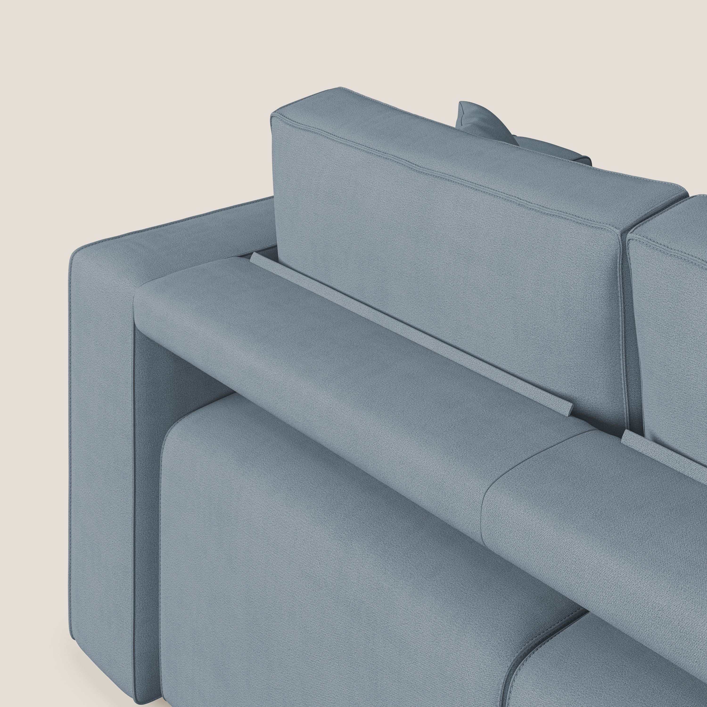 Vollständig abnehmbarer Bezug aus schmutzabweisendem Stoff mit wasserabweisender Behandlung. Die raffinierten Details in der Endverarbeitung verleihen dem Modell einen raffinierten Stil, der in seiner Art einzigartig ist, mit einer tadellosen Verarbeitung beim Nähen, bei der Auswahl der verwendeten Rohstoffe und in der Endphase der Polsterung jedes einzelnen Produkts.