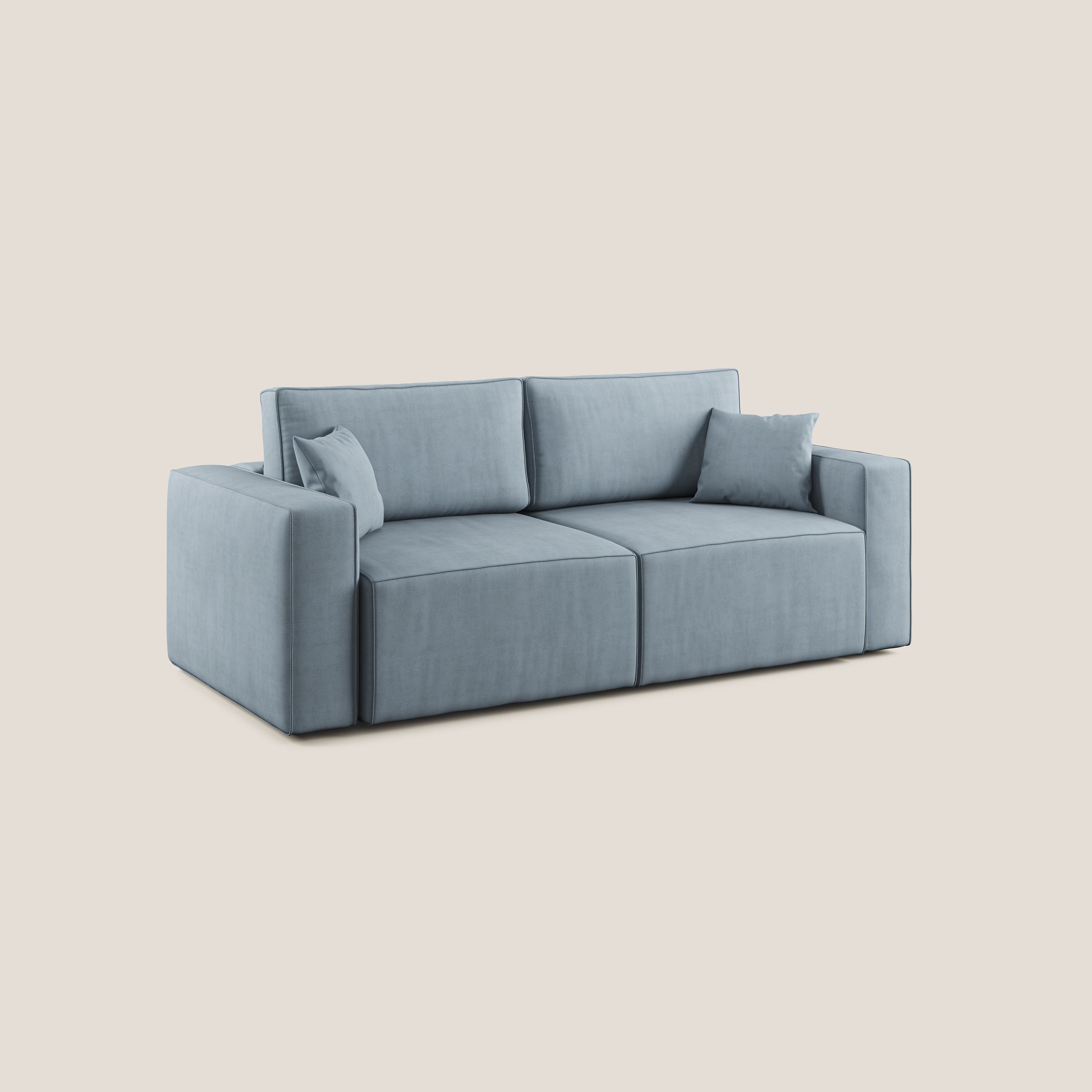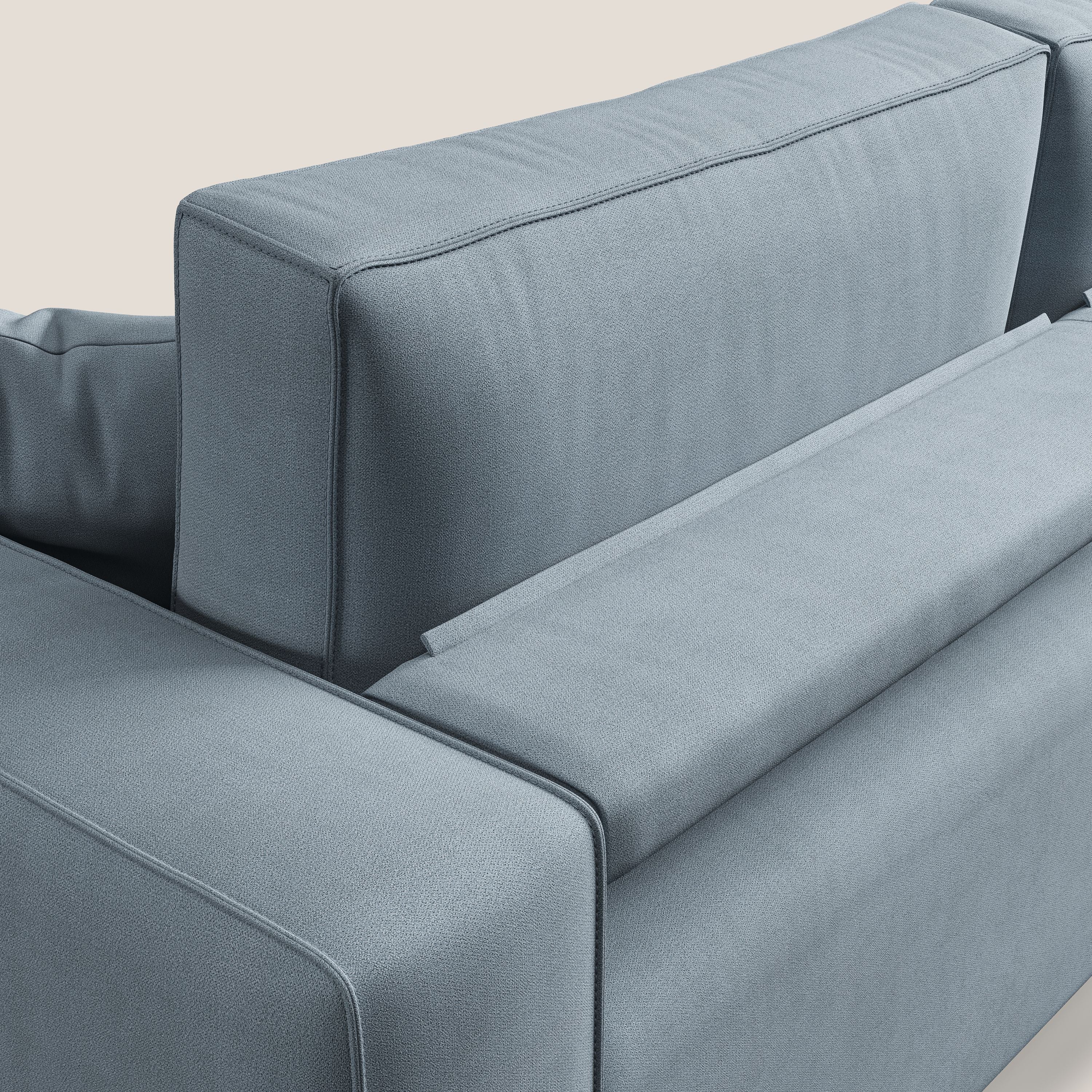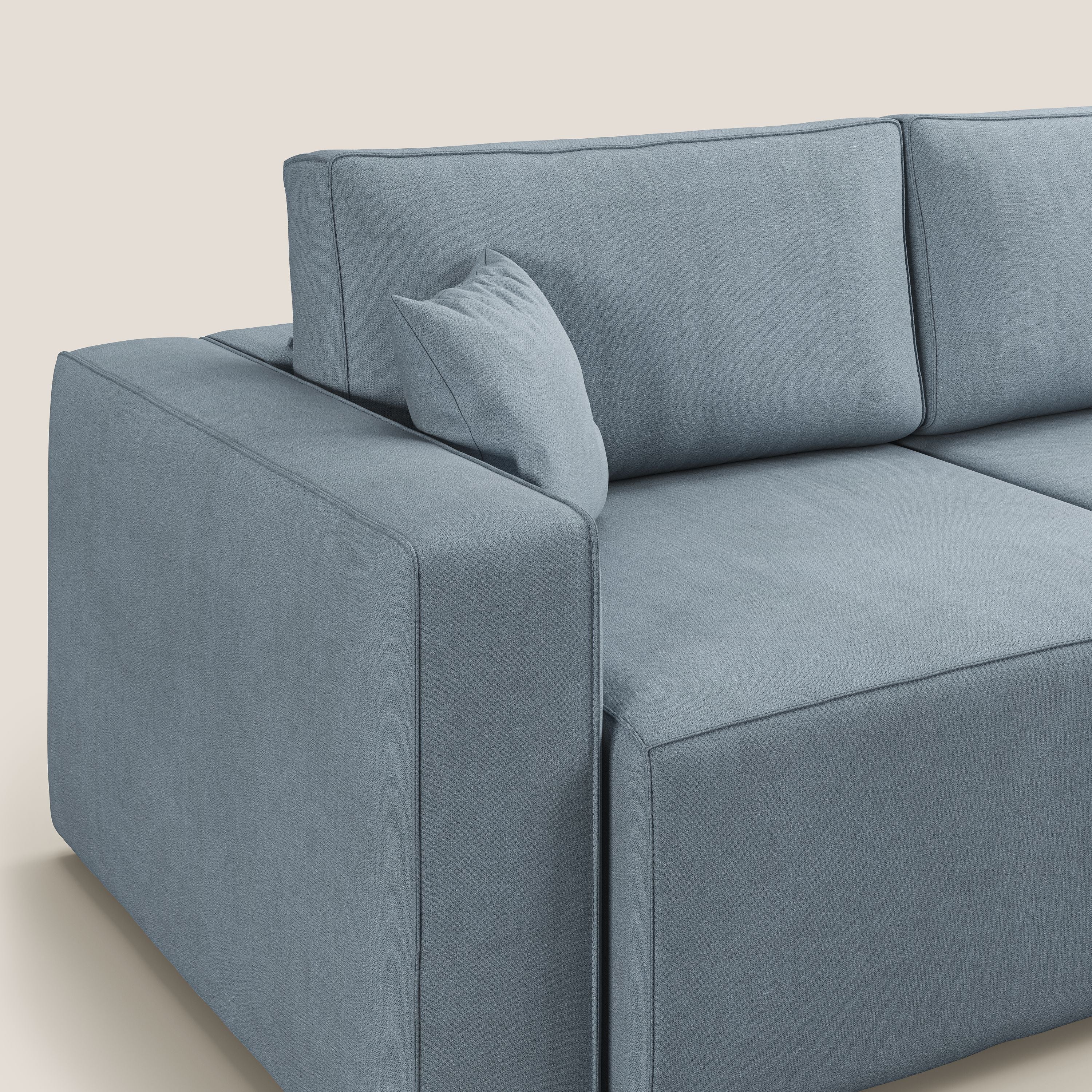 Vollständig abnehmbarer Bezug aus schmutzabweisendem Stoff mit wasserabweisender Behandlung. Die raffinierten Details in der Endverarbeitung verleihen dem Modell einen raffinierten Stil, der in seiner Art einzigartig ist, mit einer tadellosen Verarbeitung beim Nähen, bei der Auswahl der verwendeten Rohstoffe und in der Endphase der Polsterung jedes einzelnen Produkts.