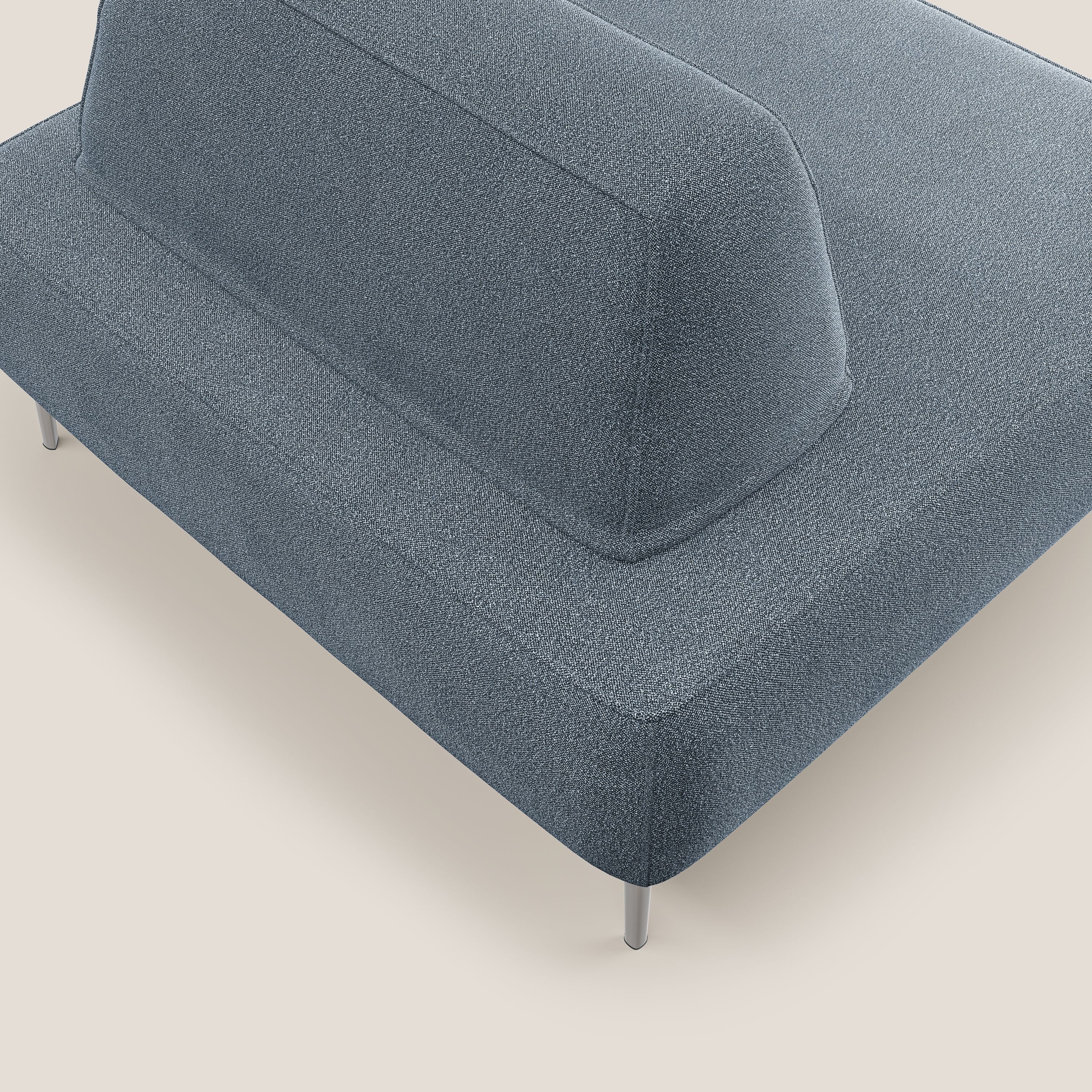 Die Elemente der Rückenlehne sind mit einem Anti-Rutsch-System ausgestattet, um einen besseren Halt am unteren Teil des Sofas zu gewährleisten. All diese Eigenschaften sorgen dafür, dass das Modell nicht nur ein Sofa ist, sondern ein echtes Designobjekt für den Wohnbereich. Die 15 cm hohen Füße aus verchromtem Stahl heben das Sofa vom Boden ab und sorgen für ein leichtes Design.
