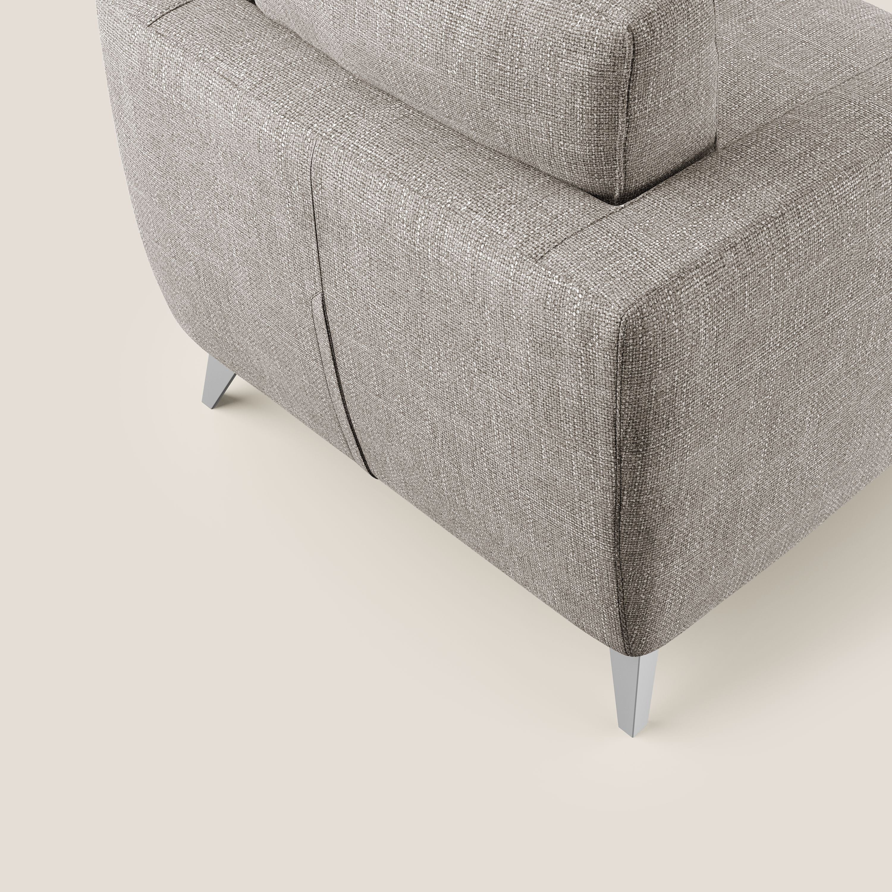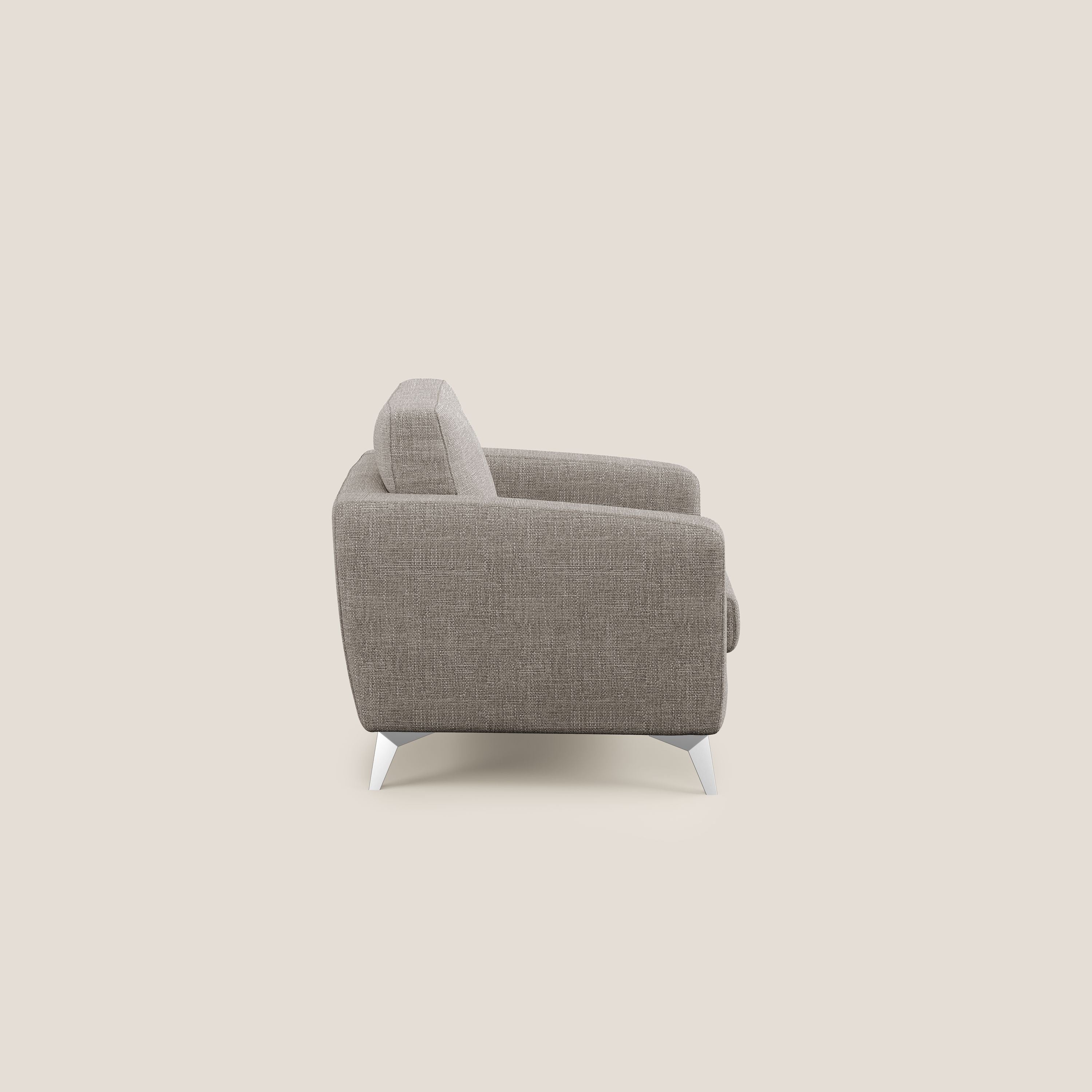 Der Sessel ORIONE aus weichem, wasserfestem gewebtem Stoff wird durch die H13 cm hohen Füße aus verchromtem Stahl aufgewertet. Mit seiner modernen, nüchternen und eleganten Linie bringt er einen Hauch von Lebendigkeit in die Räumlichkeit. Bequem durch die breite Sitzfläche und angenehm durch die weiche Rückenlehne, eignet er sich perfekt für entspannende Momente oder für eine gesellige oder zum Lesen einladende Situation. Die abgerundete Form des hinteren Teils des Sessels macht ihn besonders und einzigartig.
