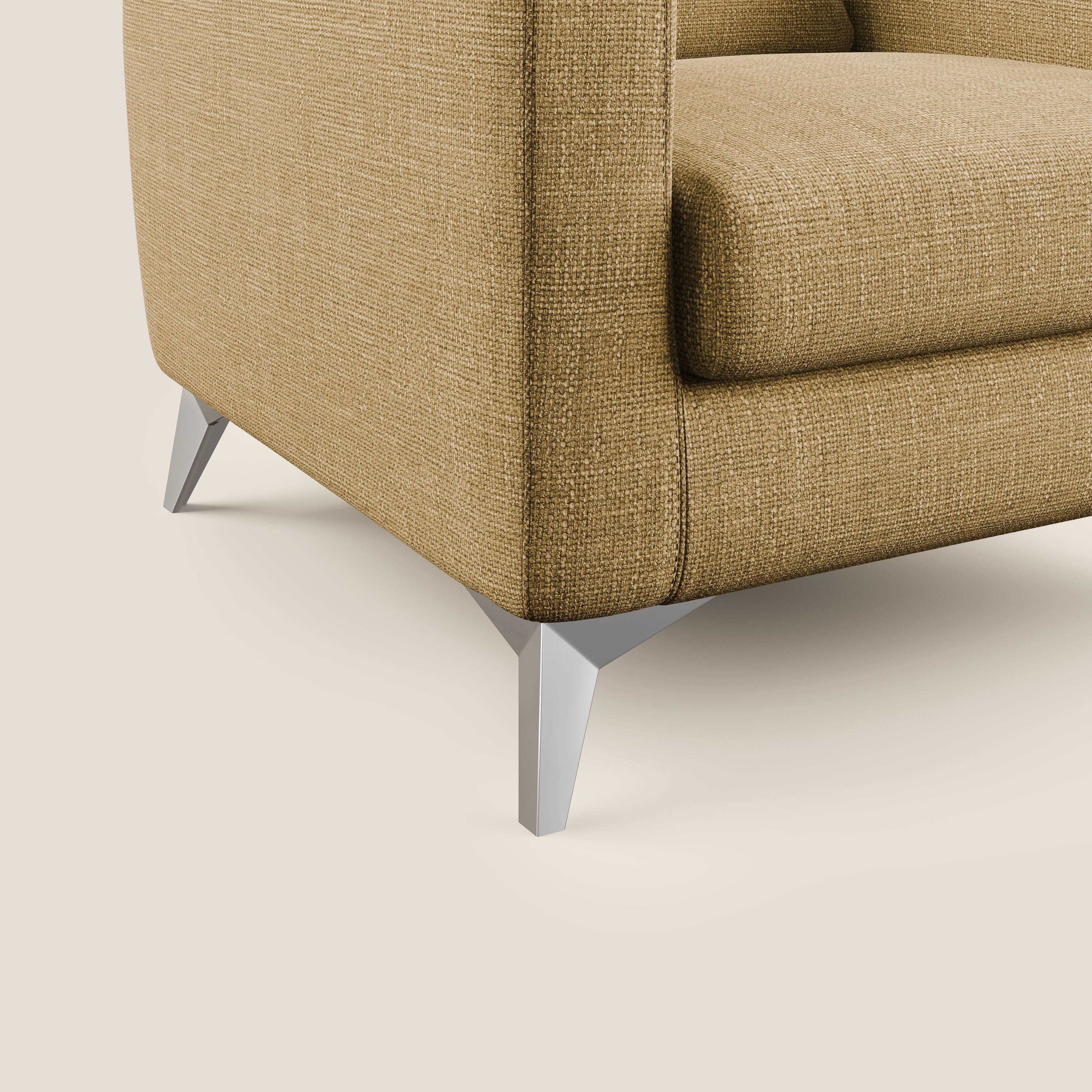 Der Sessel ORIONE aus weichem, wasserfestem gewebtem Stoff wird durch die H13 cm hohen Füße aus verchromtem Stahl aufgewertet. Mit seiner modernen, nüchternen und eleganten Linie bringt er einen Hauch von Lebendigkeit in die Räumlichkeit. Bequem durch die breite Sitzfläche und angenehm durch die weiche Rückenlehne, eignet er sich perfekt für entspannende Momente oder für eine gesellige oder zum Lesen einladende Situation. Die abgerundete Form des hinteren Teils des Sessels macht ihn besonders und einzigartig.