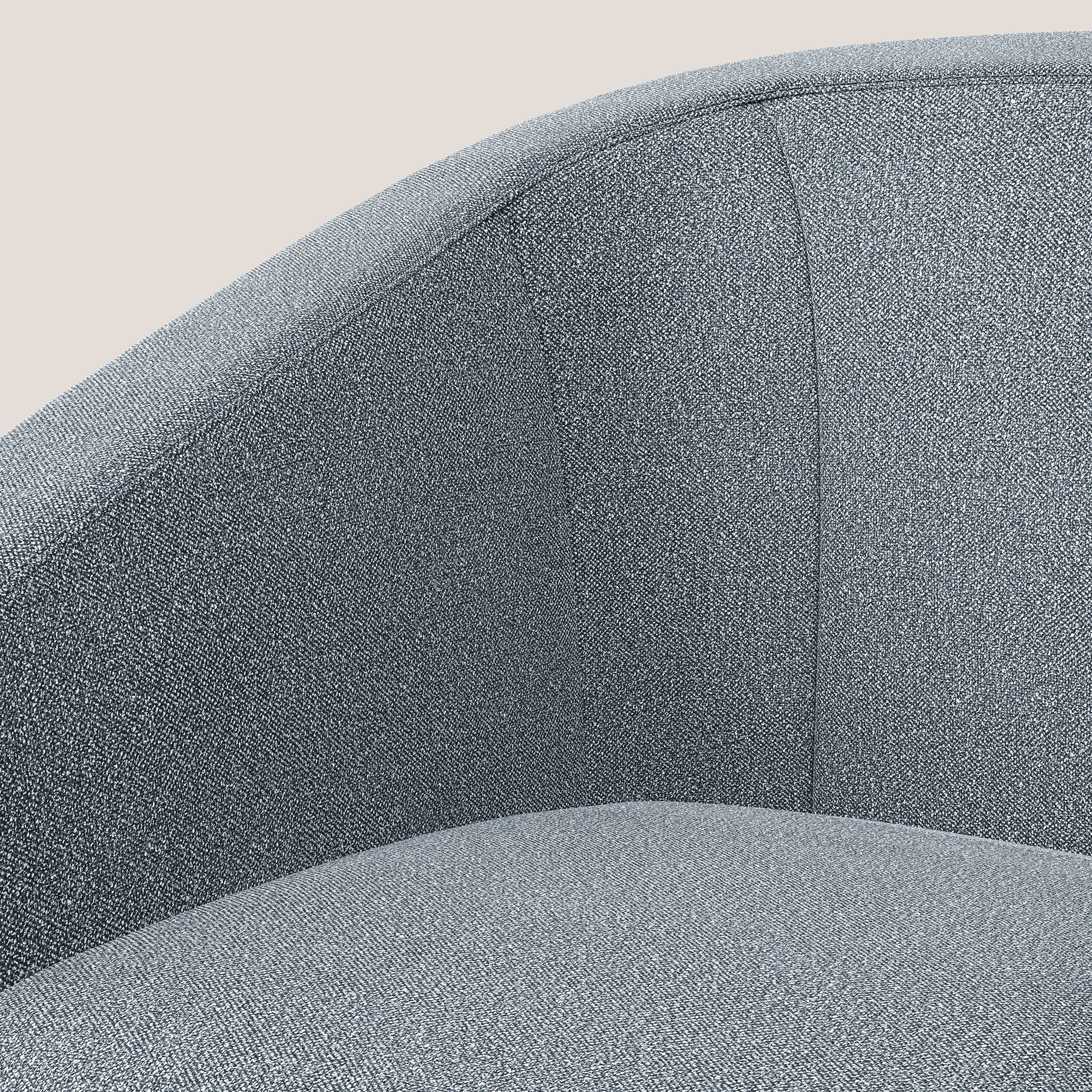 Sessel aus weichem, wasserfestem Bouclé-Stoff, mit 13 cm hohen schwarzen Stahlfüßen.