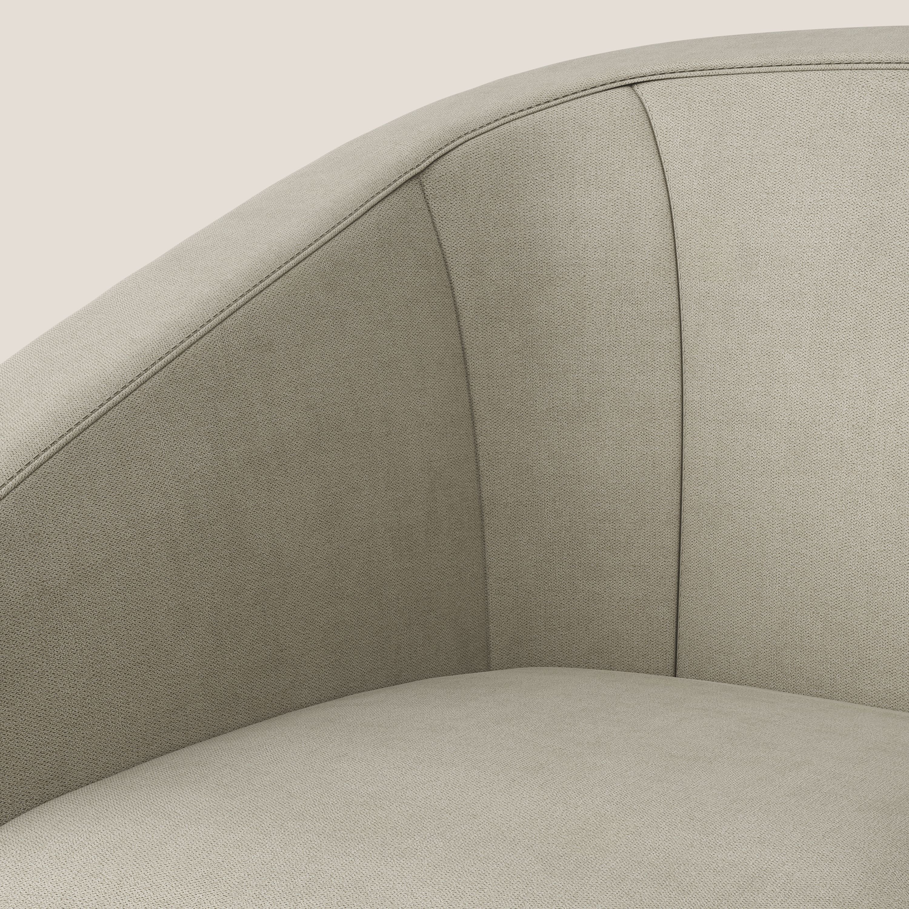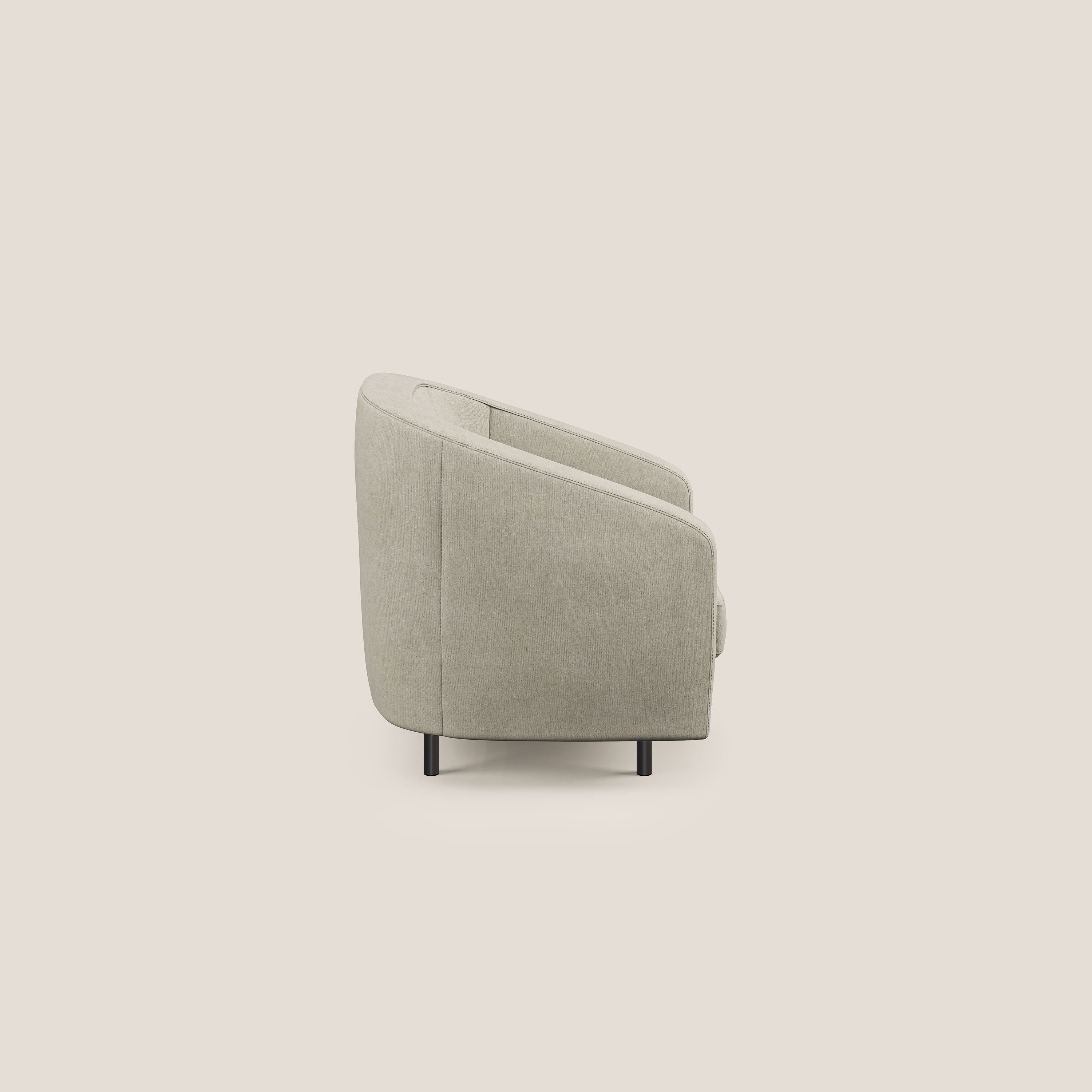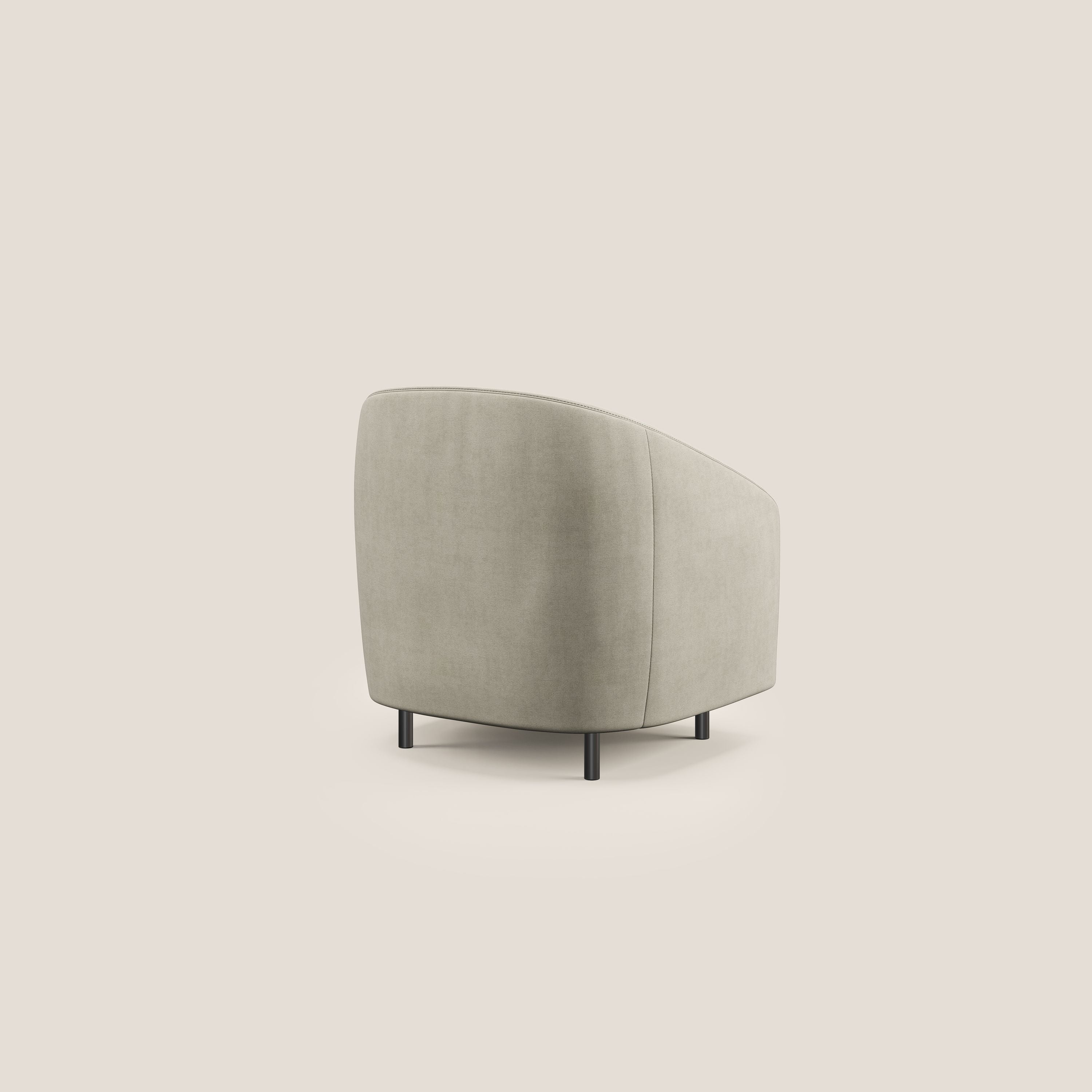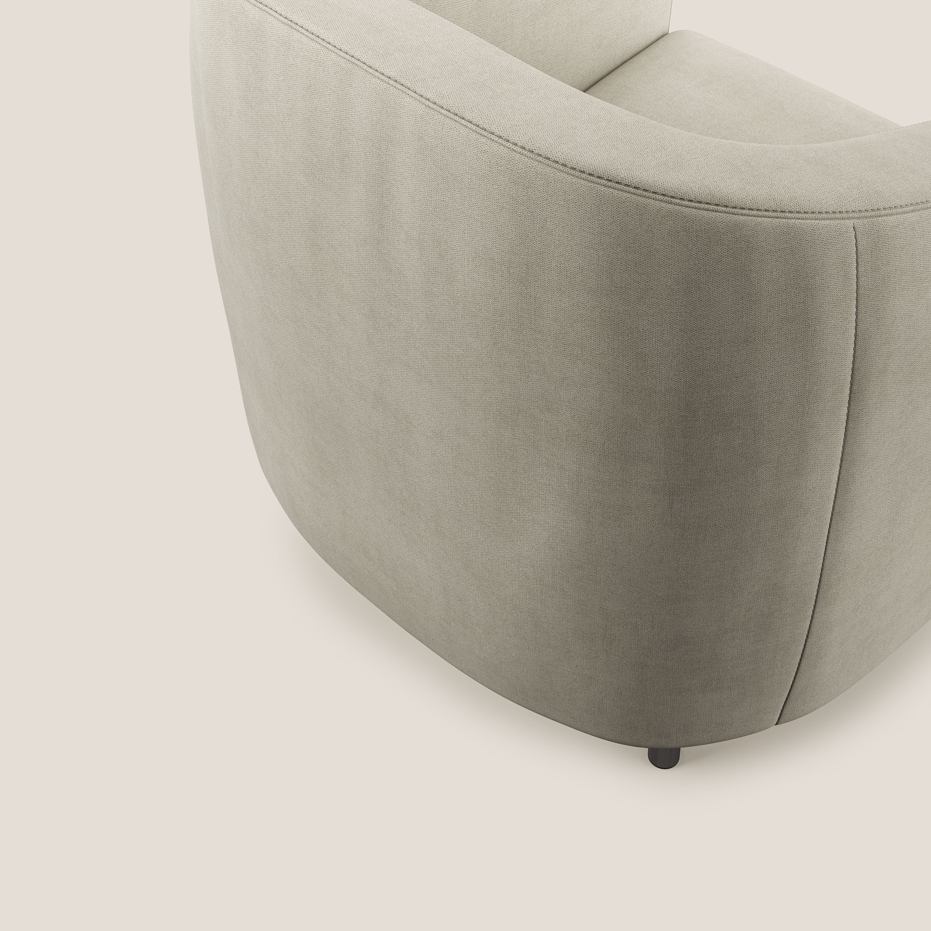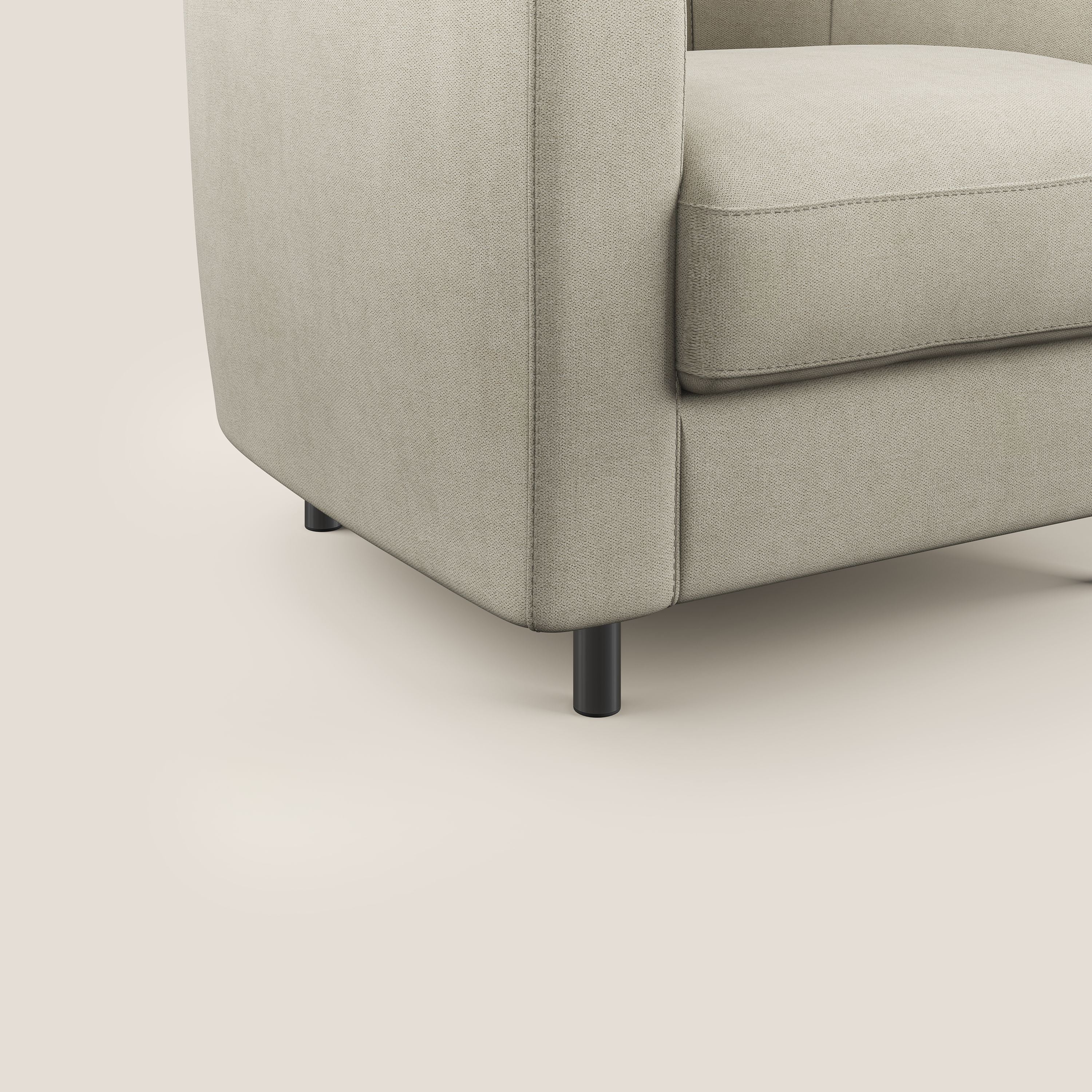 Sessel aus weichem, wasserfestem Stoff, mit 13 cm hohen schwarzen Stahlfüßen.