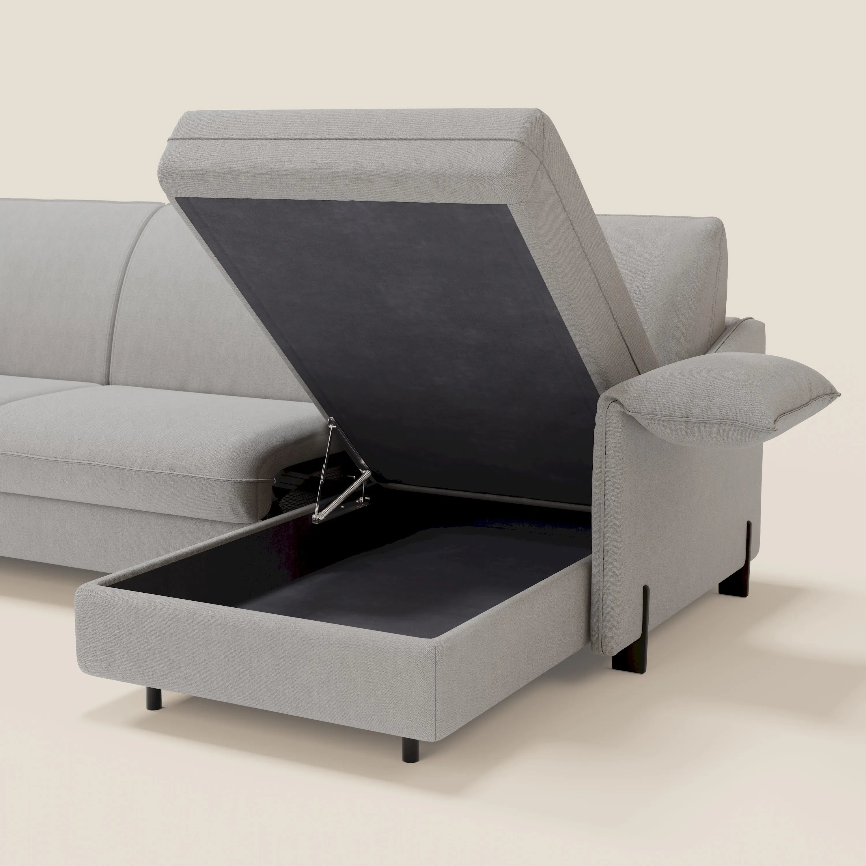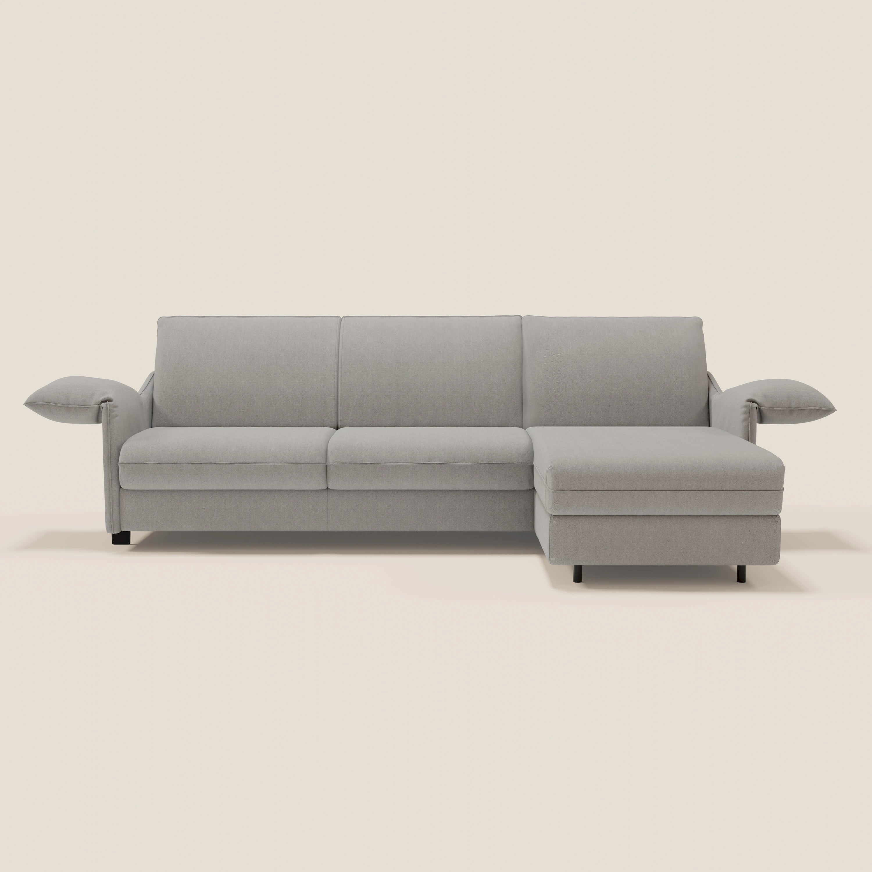 Il PRIMULA ANGOLARE è l’equilibrio perfetto tra funzione evoluta e design essenziale. Linee leggere, volumi ben calibrati e dettagli tecnici sofisticati rendono questo divano un alleato ideale per chi cerca un divano letto elegante, pratico e adatto anche a spazi contenuti. La penisola con vano contenitore profonda 150 cm aggiunge ulteriore praticità senza appesantire il design, mantenendo l’armonia della forma e della funzione.
