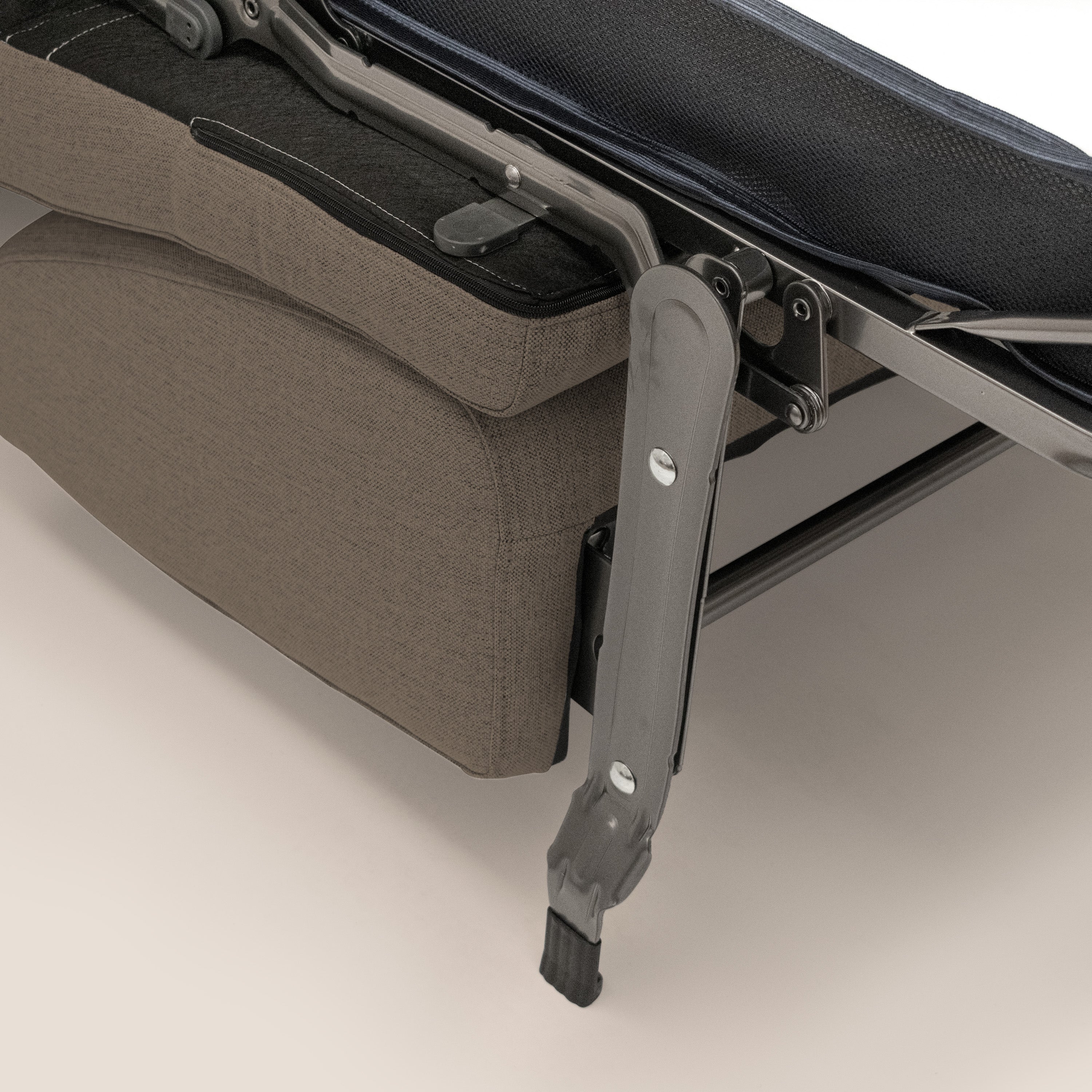 Mechanismus: Innovatives Klappensystem, das mit einer einfachen Bewegung das Öffnen des Mechanismus ermöglicht, ohne die Kissen von Sitz und Rückenlehne zu entfernen. Das Gestell ist aus hochfestem Möbelrohr mit Epoxy-Lackierung gefertigt, um zu verhindern, dass Teile korrodieren oder durch aggressive Mittel beschädigt werden