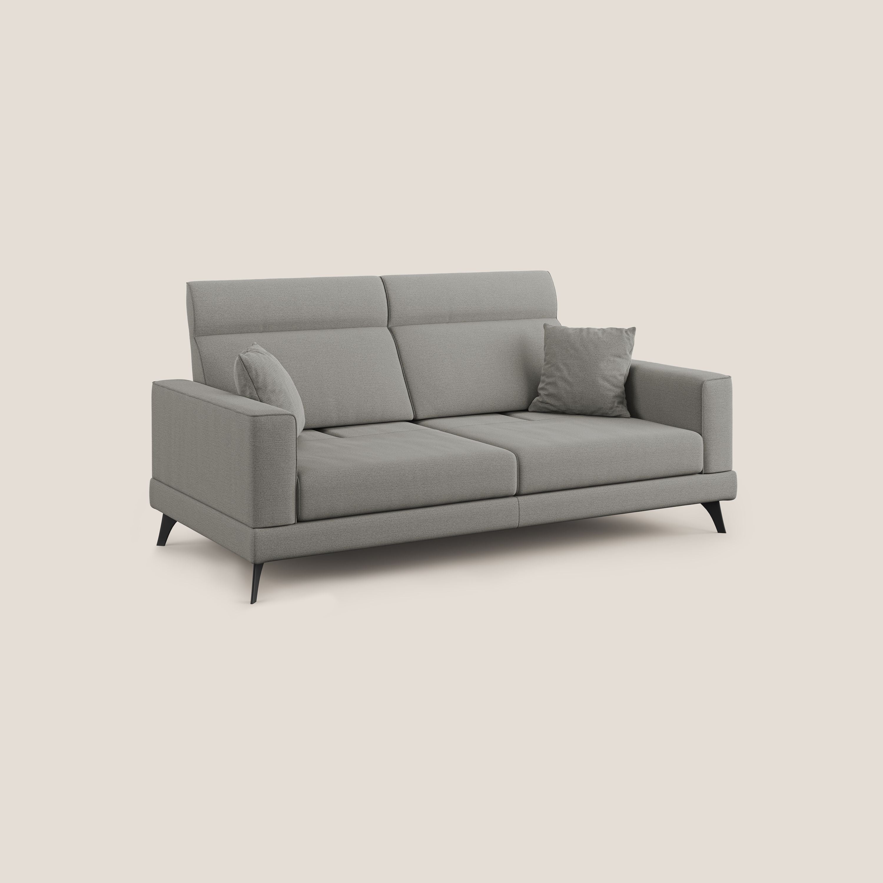 Ein Sofa mit mehreren Lösungen. Mit seiner modernen Linie ist das Modell SLIDE ein Relaxsofa mit beweglichen Rückenlehnen, die es ermöglichen, die Sitztiefe des Elements von 58 cm bis 83 cm zu verstellen, um eine informellere und tiefere Sitzfläche zu erhalten, fast wie eine Halbinsel. Der praktische Mechanismus der verschiebbaren Rückenlehne ermöglicht es, mit einer geschickten Bewegung beide Rückenlehnen nach hinten zu verschieben, und Sie können die volle Tiefe des Sitzes nutzen, um maximalen Komfort zu suchen. Ausgestattet mit verstellbaren Kopfstützen, um die Rückenlehne und ihre Neigung nach Belieben einzustellen.