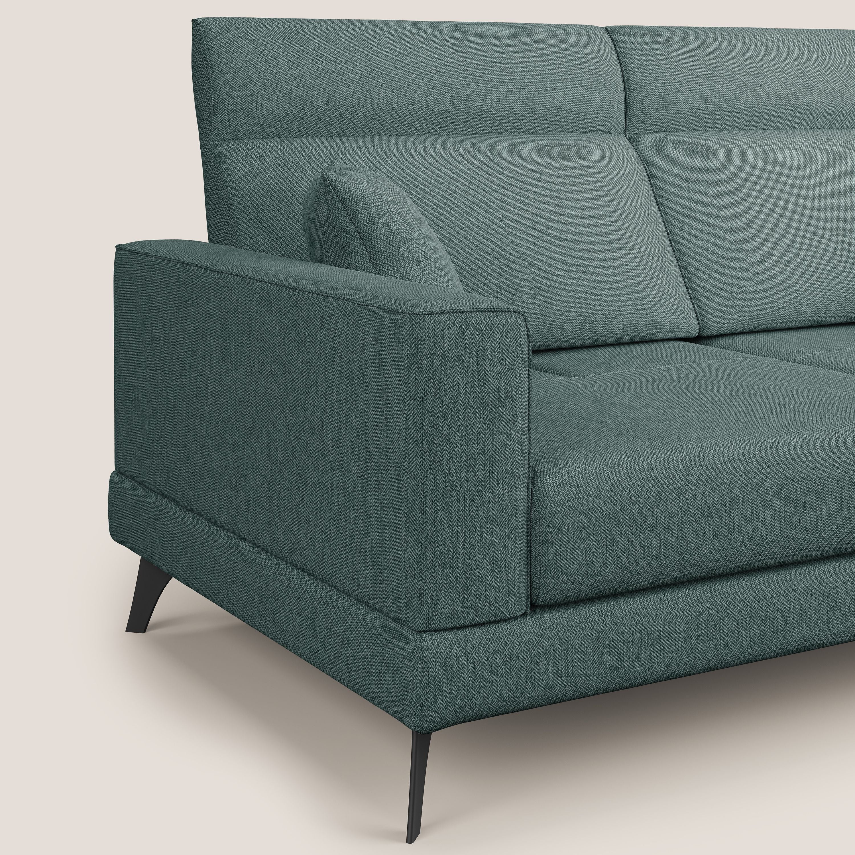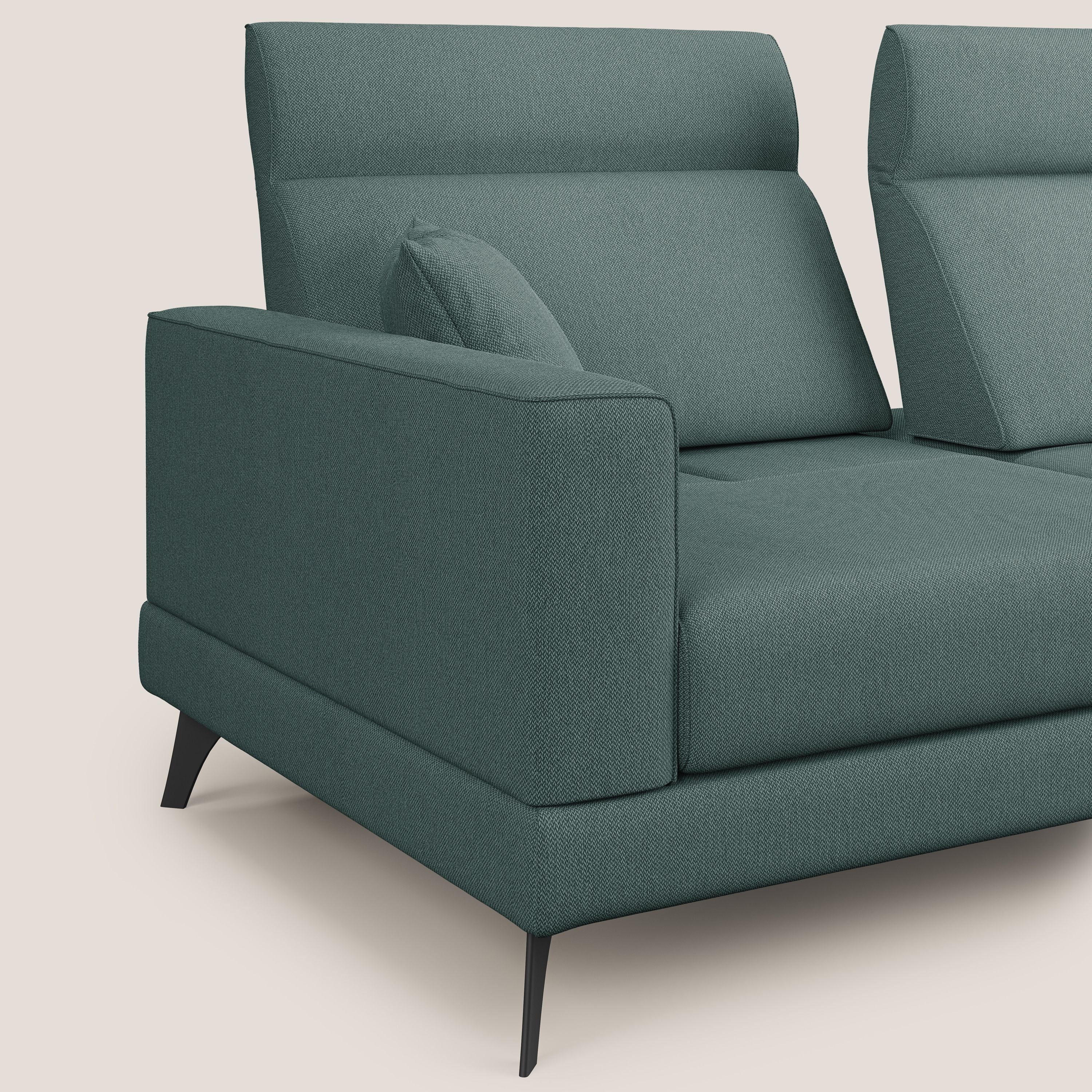 Ein Sofa mit mehreren Lösungen. Mit seiner modernen Linie ist das Modell SLIDE ein Relaxsofa mit beweglichen Rückenlehnen, die es ermöglichen, die Sitztiefe des Elements von 58 cm bis 83 cm zu verstellen, um eine informellere und tiefere Sitzfläche zu erhalten, fast wie eine Halbinsel. Der praktische Mechanismus der verschiebbaren Rückenlehne ermöglicht es, mit einer geschickten Bewegung beide Rückenlehnen nach hinten zu verschieben, und Sie können die volle Tiefe des Sitzes nutzen, um maximalen Komfort zu suchen. Ausgestattet mit verstellbaren Kopfstützen, um die Rückenlehne und ihre Neigung nach Belieben einzustellen.