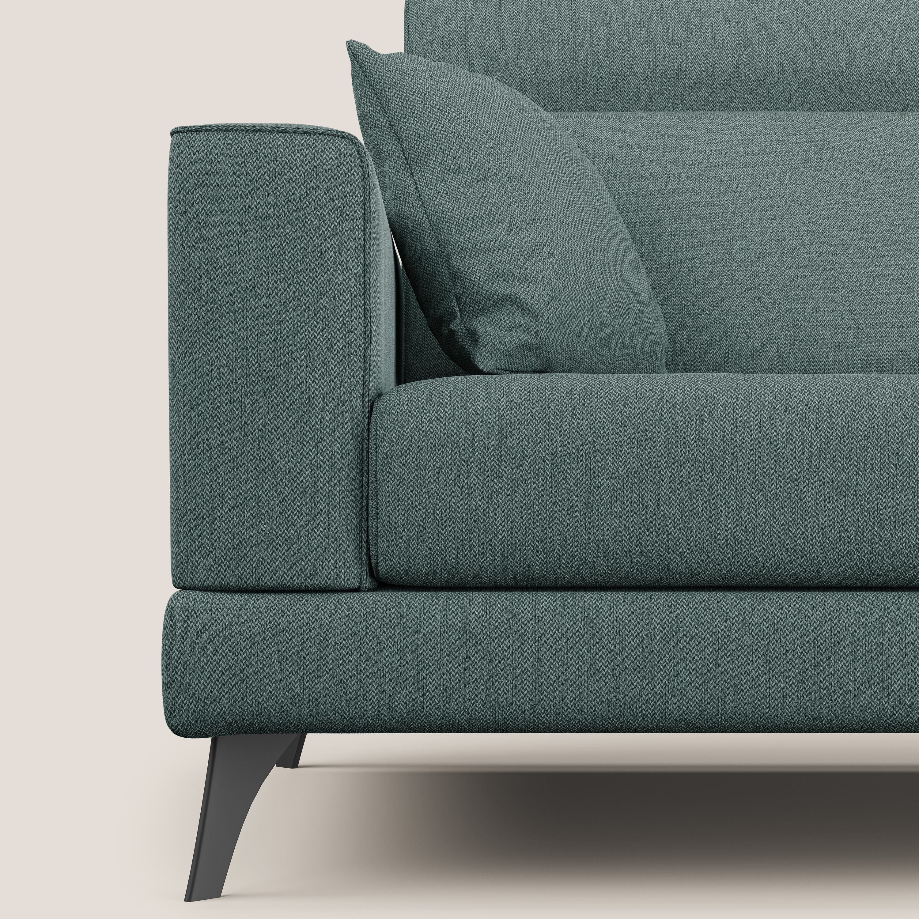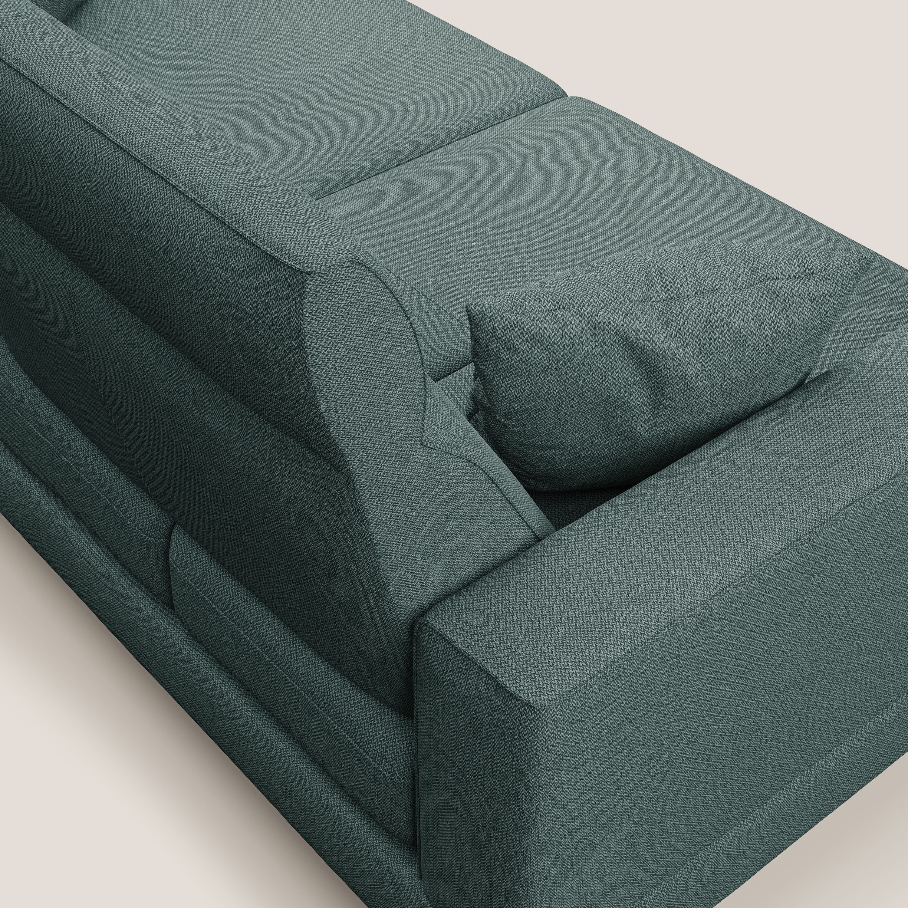 Der vollständig abnehmbare Bezug besteht aus einem Stoff mit EASY and CLEAN-Behandlung, der antibakteriell und milbenabweisend ist und somit eine bessere Hygiene im Wohnbereich garantiert. Er ist nicht nur wasserdicht und wasserabweisend, sondern gehört auch zur Kategorie der schmutzabweisenden Stoffe, d. h. Flecken wie Kaffee, Wein, Fett und Soßen lassen sich durch einfaches Abwischen mit einem mit Wasser angefeuchteten Tuch und Abtupfen der betroffenen Stelle entfernen, während Stifte und Marker einfach mit Wasser und milder Seife abgewischt werden können.