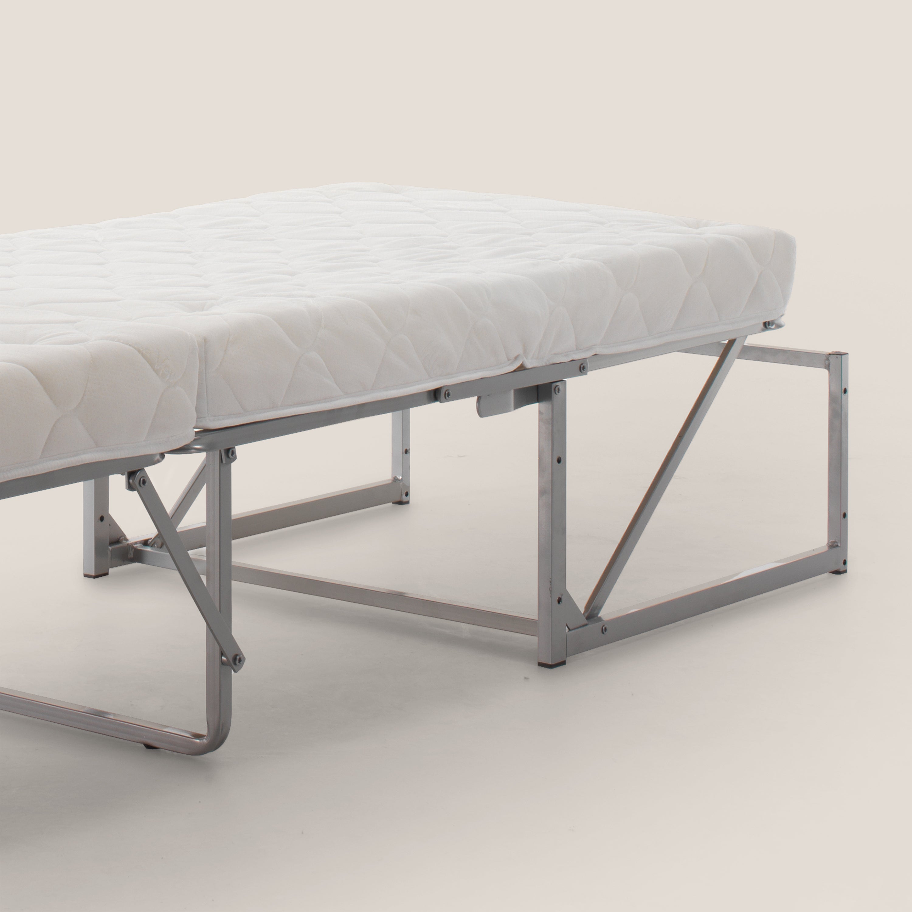 TIP-TOP ist ein bequemer Hocker, der sich dank eines innovativen, leicht zu öffnenden Systems bei Bedarf in ein komfortables Einzelbett verwandeln lässt. Eine platzsparende Lösung für Zuhause und im Gastgewerbe.