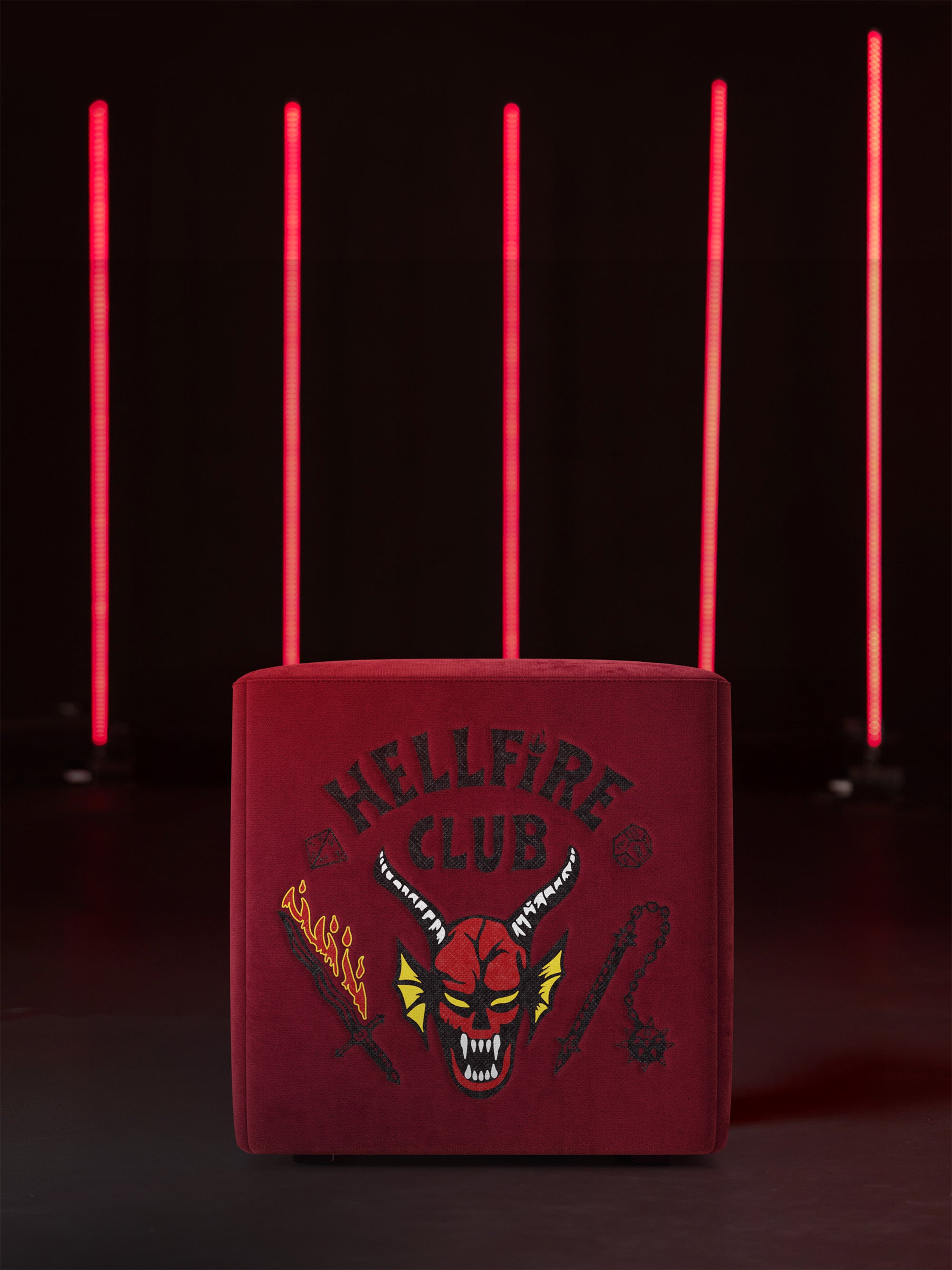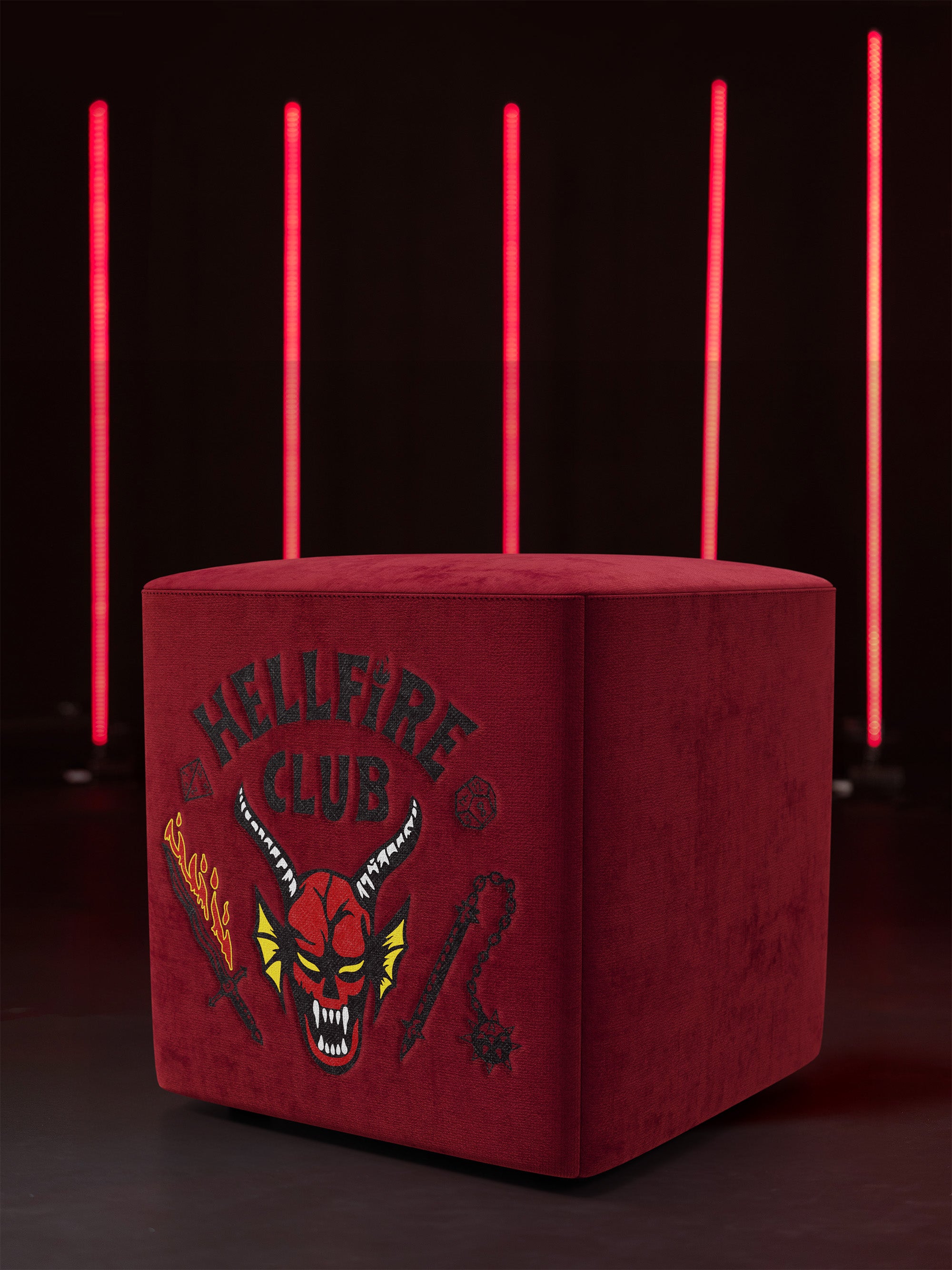 Dalla collaborazione ufficiale tra Netflix e Divani.store nasce il Pouf Cube Hellfire Club – Stranger Things Limited Edition, un omaggio al club più leggendario di Hawkins.