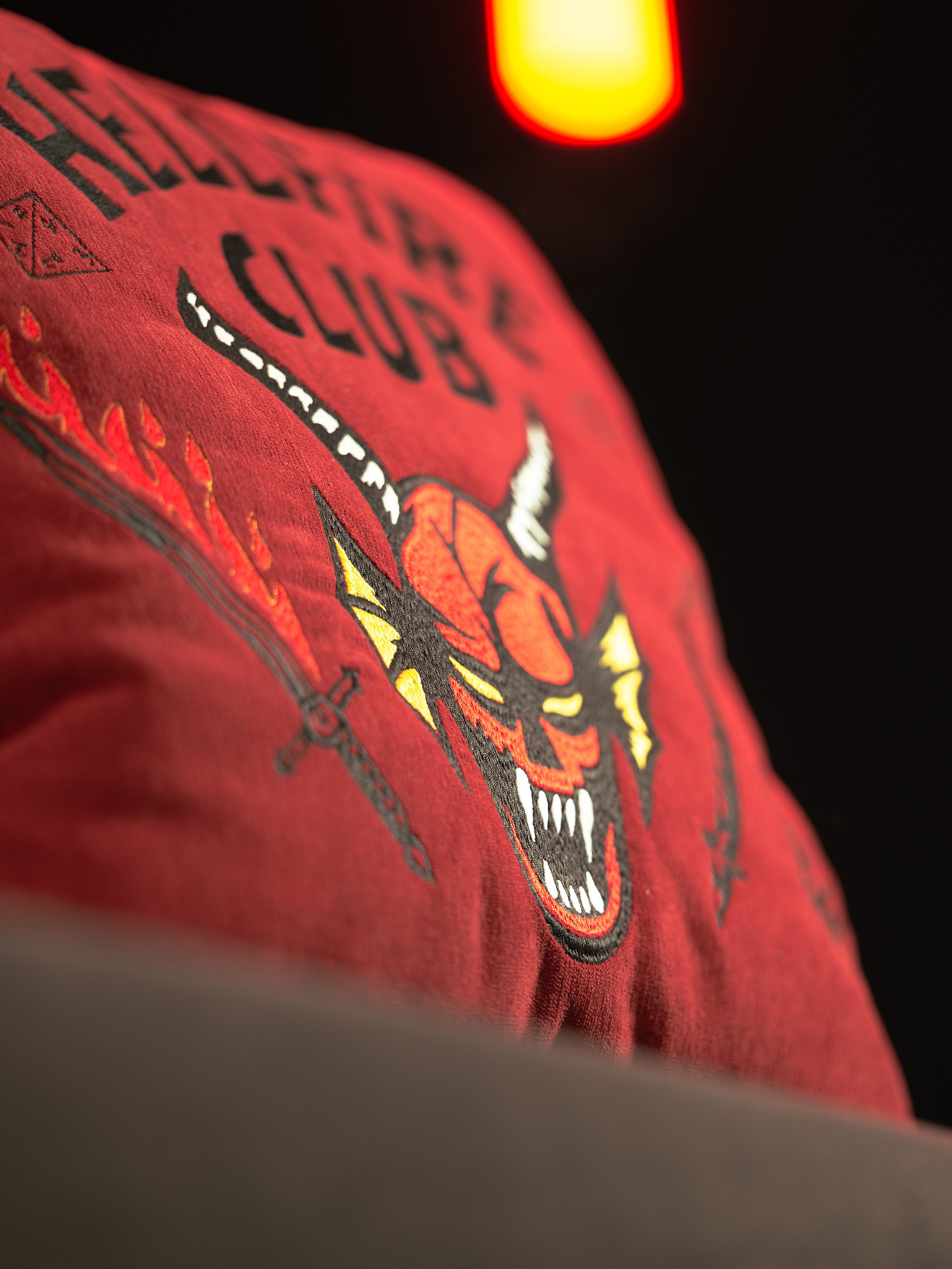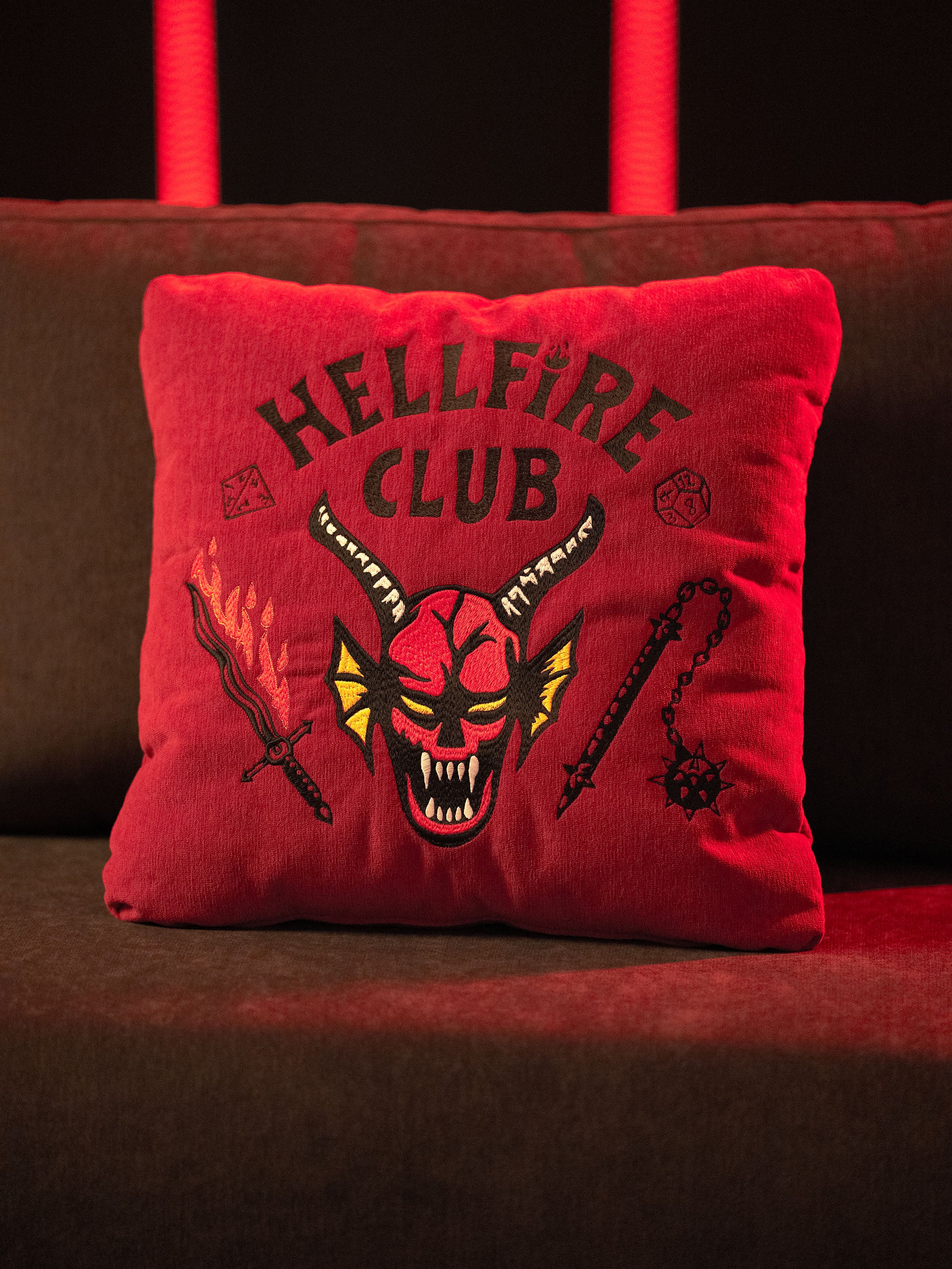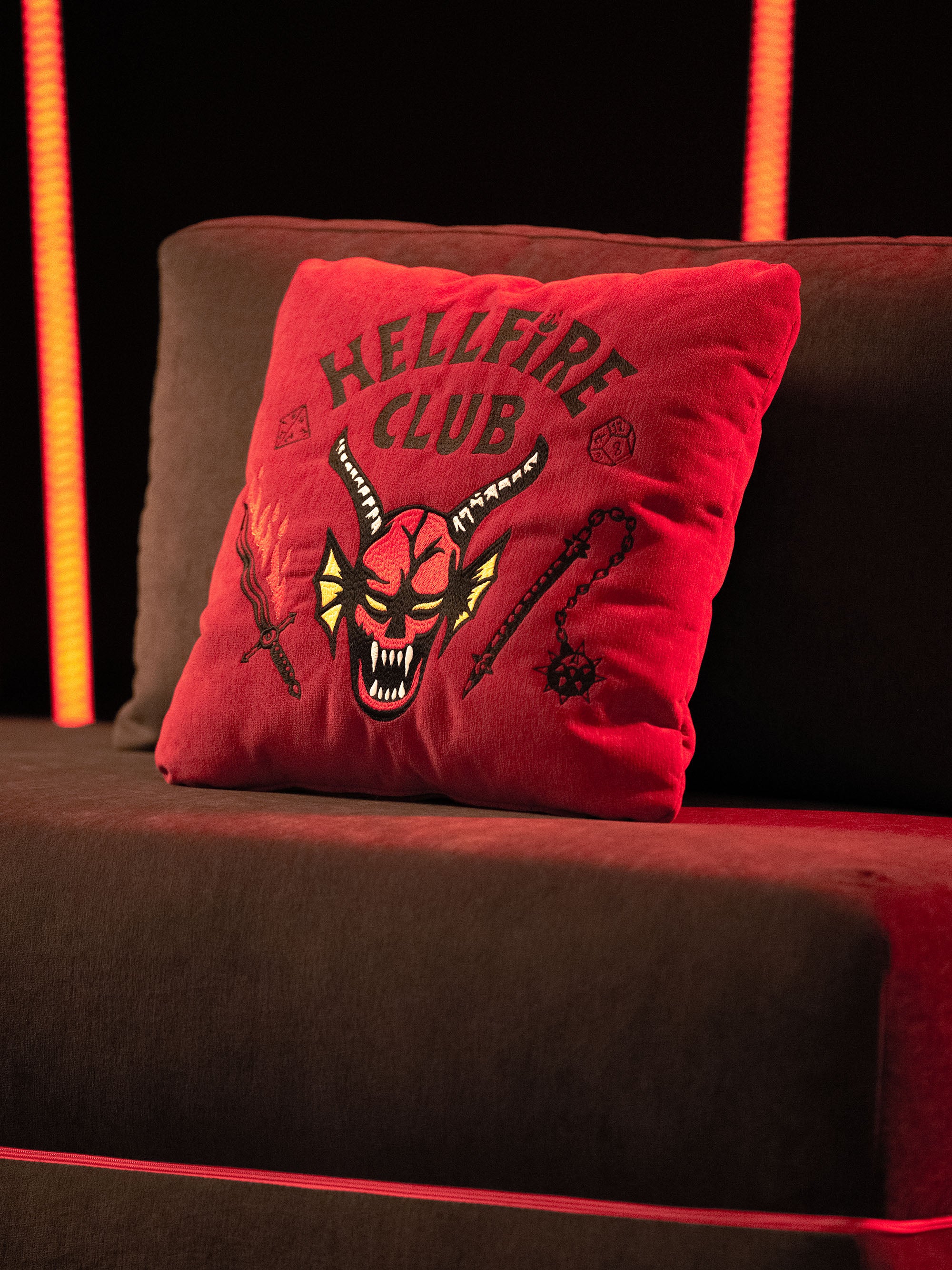 Direttamente dall’universo di Stranger Things e dalla collaborazione ufficiale tra Netflix e Divani.store, nasce il Cuscino Hellfire Club – Limited Edition, un omaggio al club più mitico della serie e ai fan che ne condividono lo spirito.