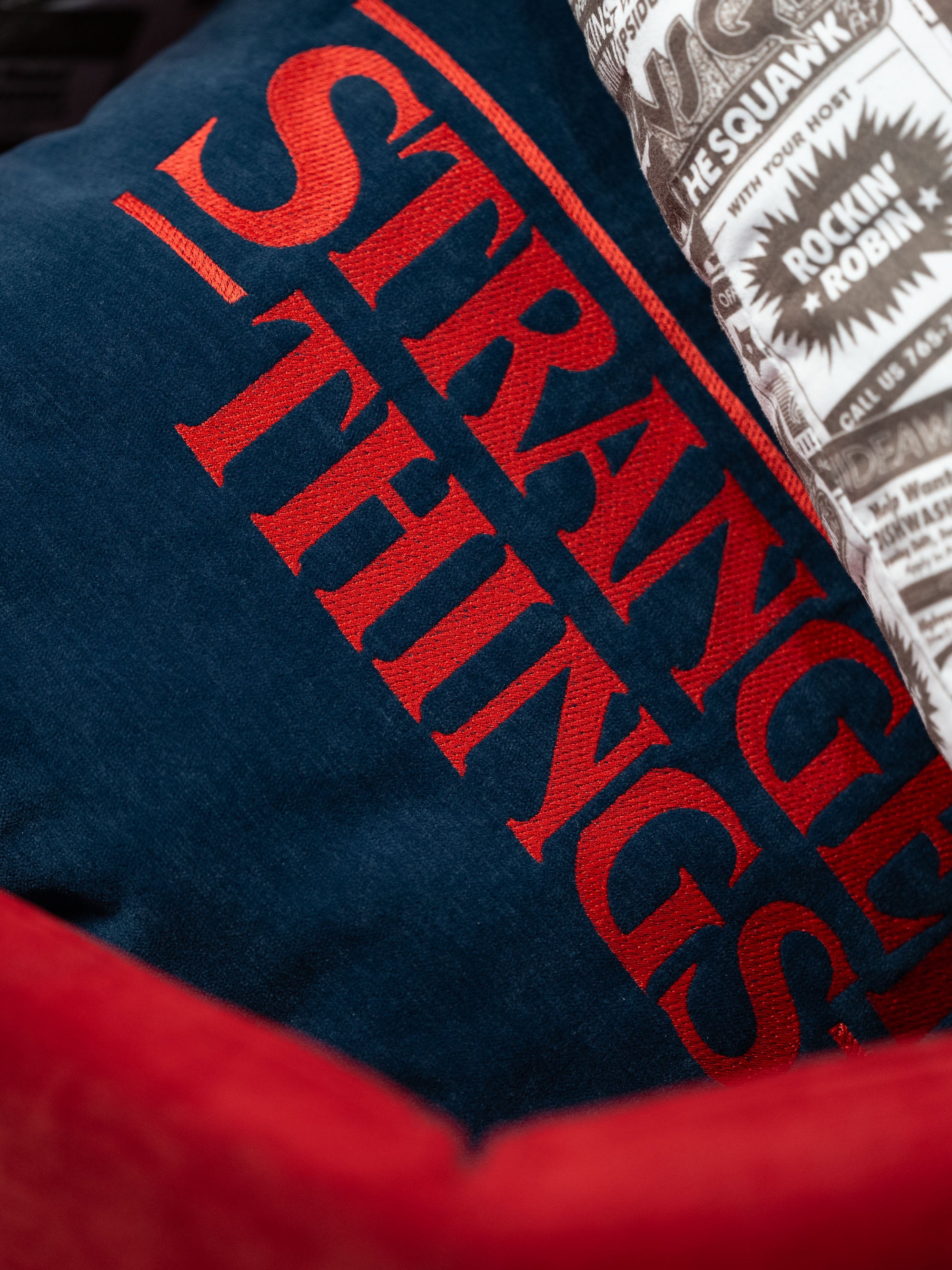 Perfetto per accompagnare i divani e pouf della collezione o per impreziosire qualsiasi ambiente, il Cuscino Stranger Things Limited Edition unisce comfort, design e cultura pop in un unico gesto di stile.