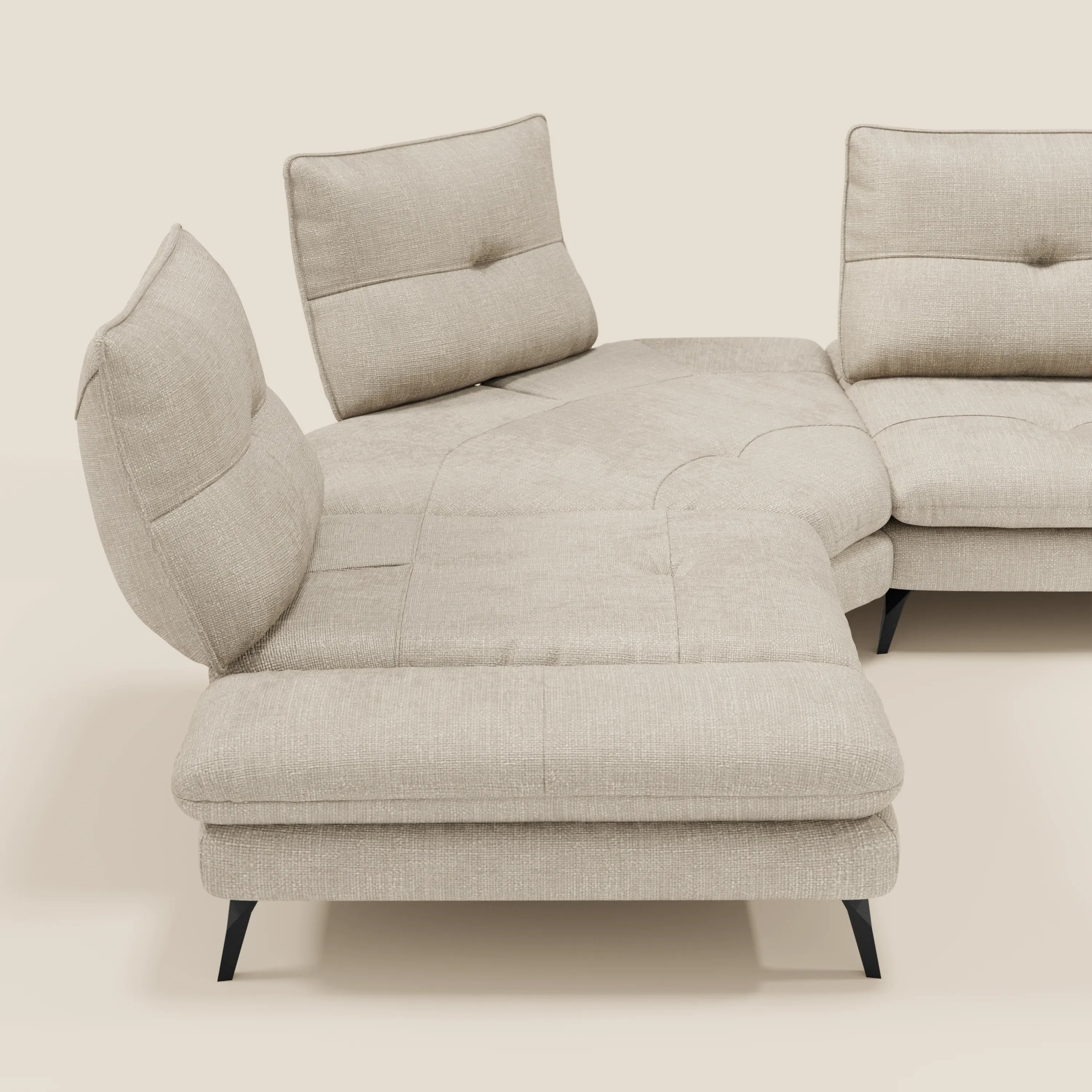 La modularità intelligente di questa composizione garantisce un'ampia superficie di seduta, mentre iL bracciolo regolabile aggiunge versatilità: si possono inclinare per rilassarsi leggendo, guardando la TV o anche per distendersi comodamente come su una chaise longue.