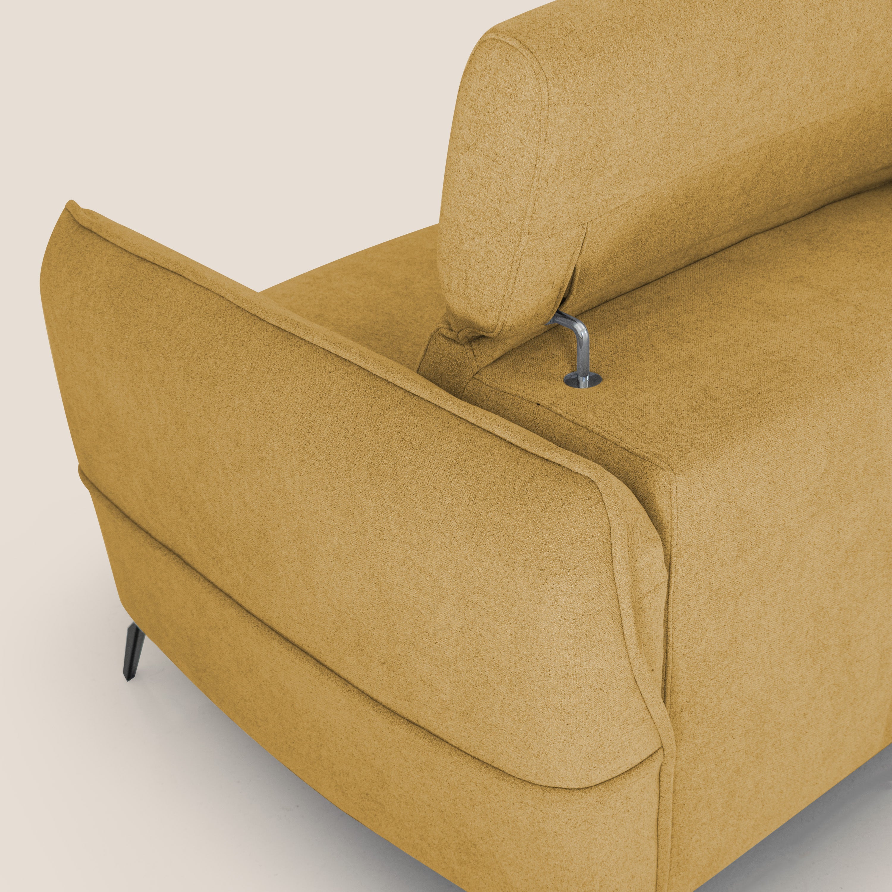 Dotato di poggiatesta reclinabili, BLOOM ti offre una seduta personalizzabile: poggiatesta bassi per momenti di conversazione o regolabile per una posizione rilassata ideale per leggere o guardare un film. La versione con elemento estraibile consente di trasformare il divano in una comoda penisola allungabile, ideale per distendersi completamente, ottimizzando lo spazio senza rinunciare al comfort.