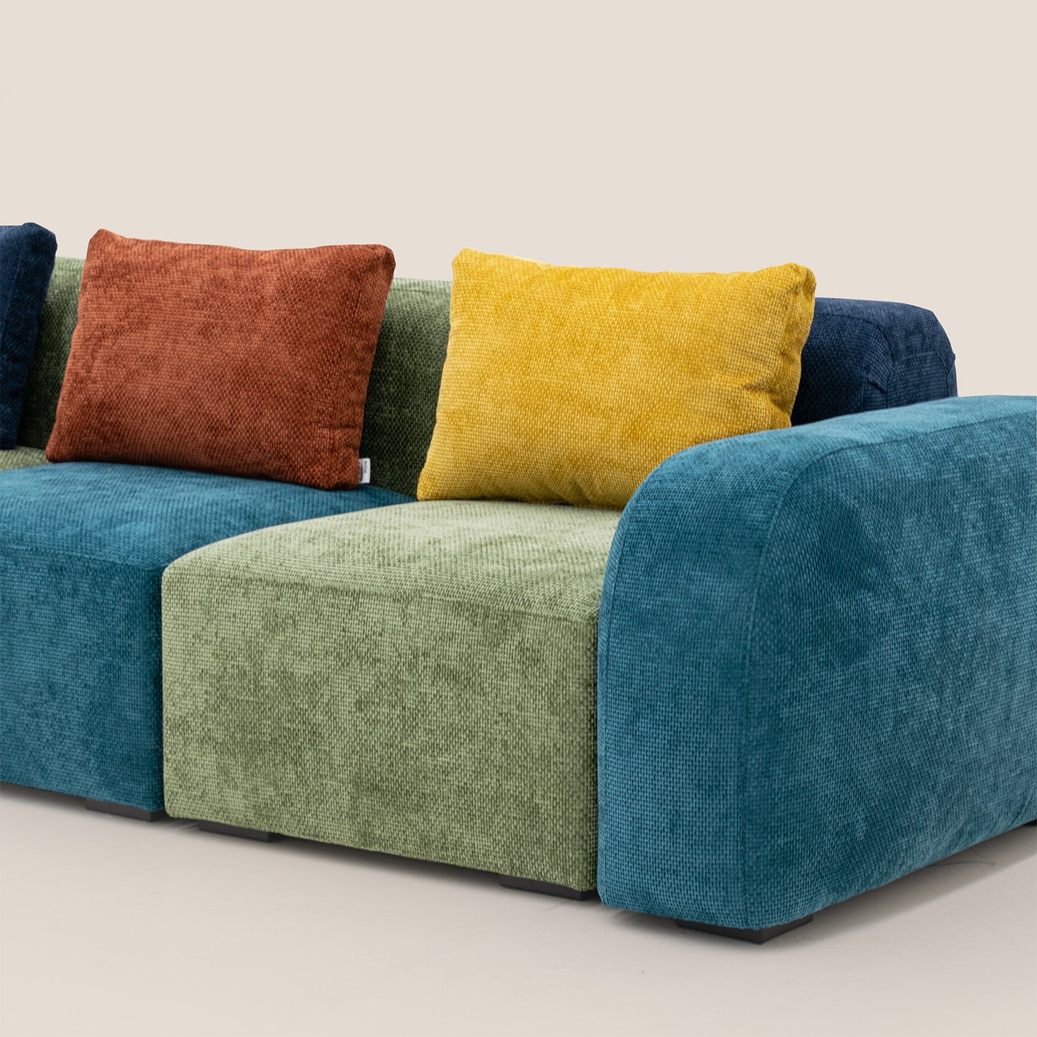 Il rivestimento scelto è un tessuto morbido e pratico, dotato di trattamento impermeabile e smacchiabile ad acqua, in grado di resistere a macchie di caffè, vino, sughi, pennarelli e cosmetici. Certificato Oeko-tex Standard 100, irrestringibile e lavabile in lavatrice a 30°. Anche il pouf resta personalizzabile in diversi colori e materiali.