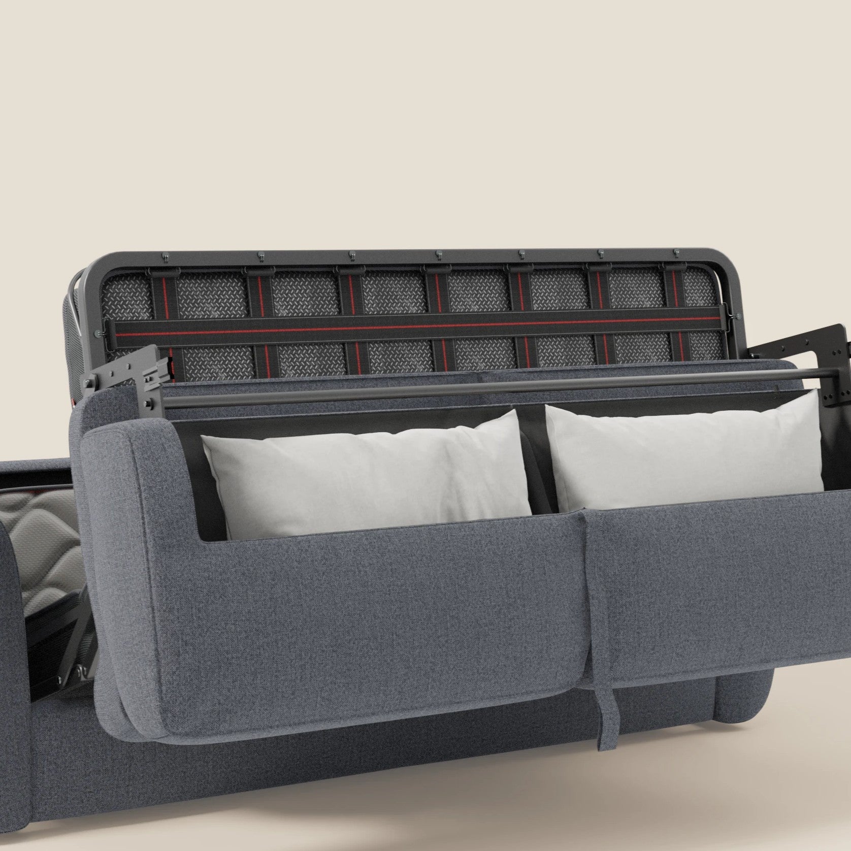 - Meccanismo a ribalta di ultima generazione, in acciaio, con piano in maglia elettrosaldata e terminale con cinghie elastiche, per un comfort ottimale sia in modalità divano che letto.